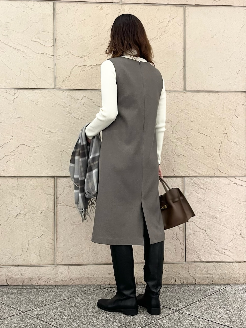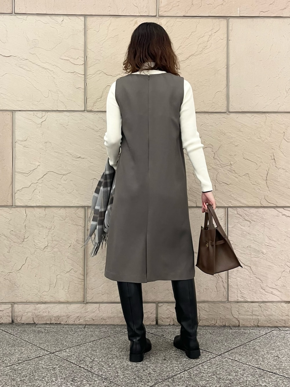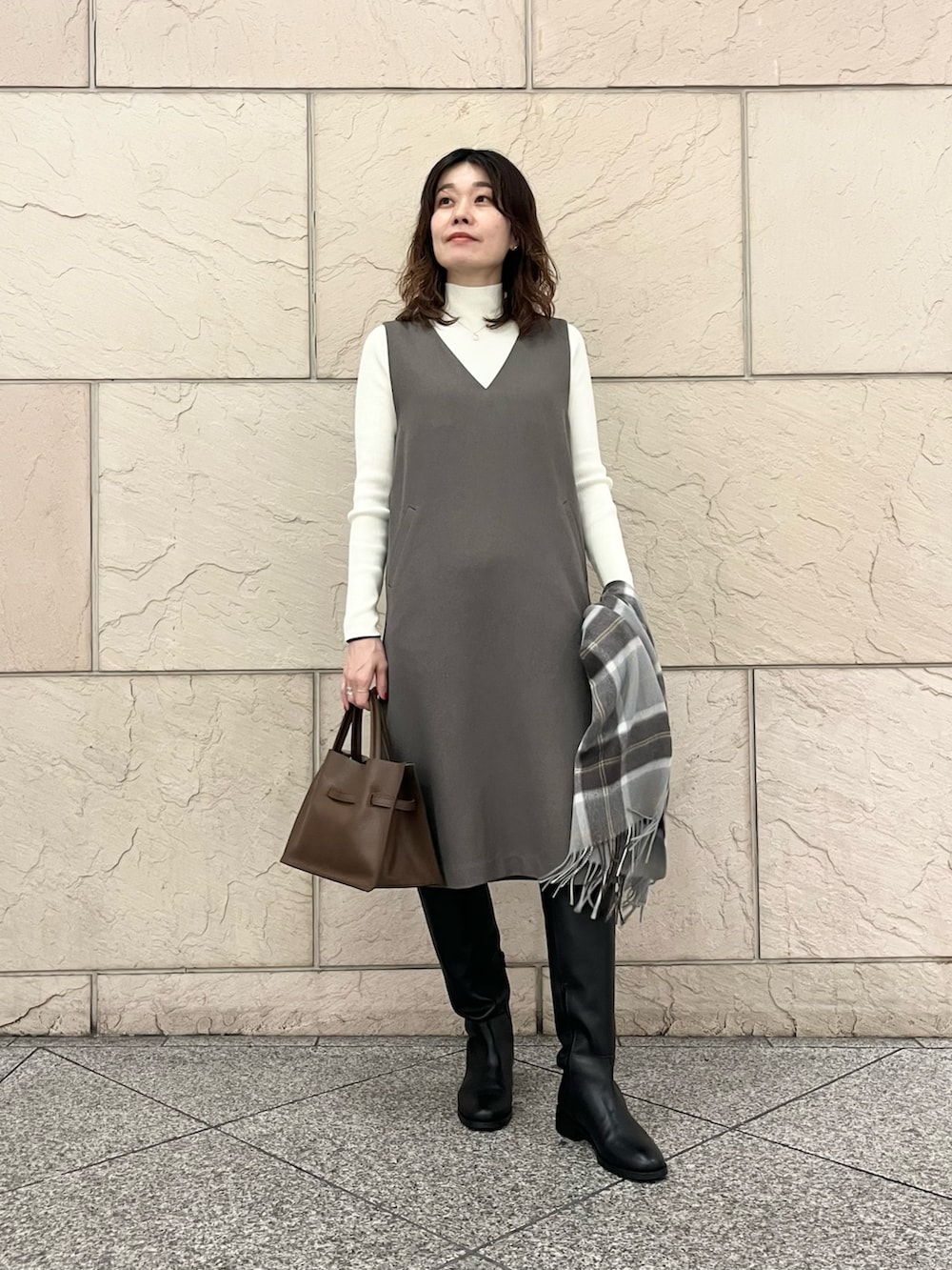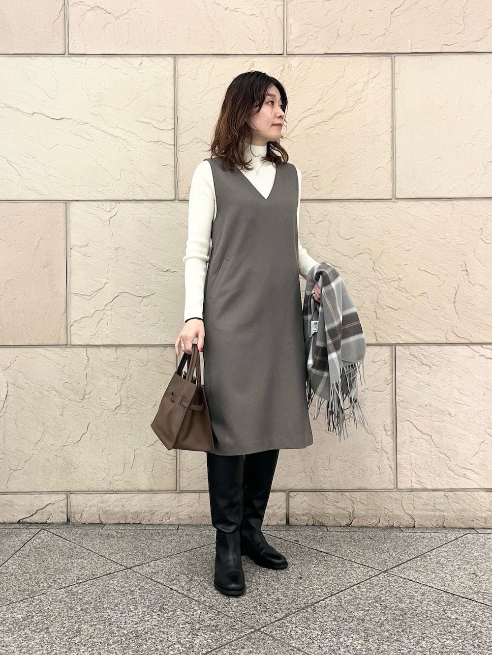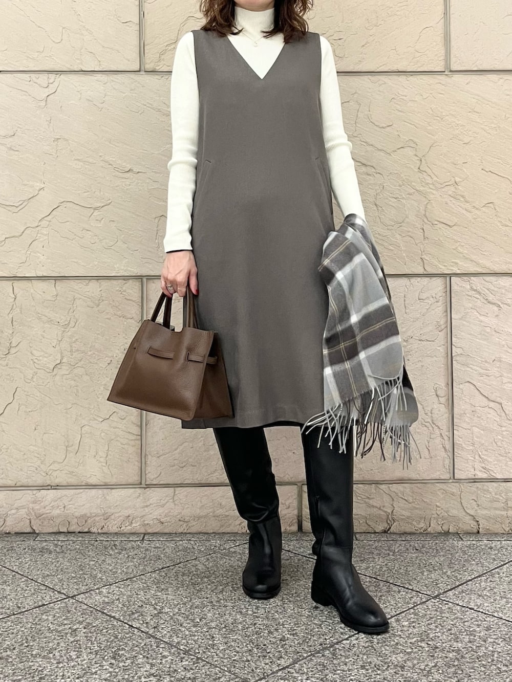 ROSSOカシミヤ混チェックストール- 着用カラー: