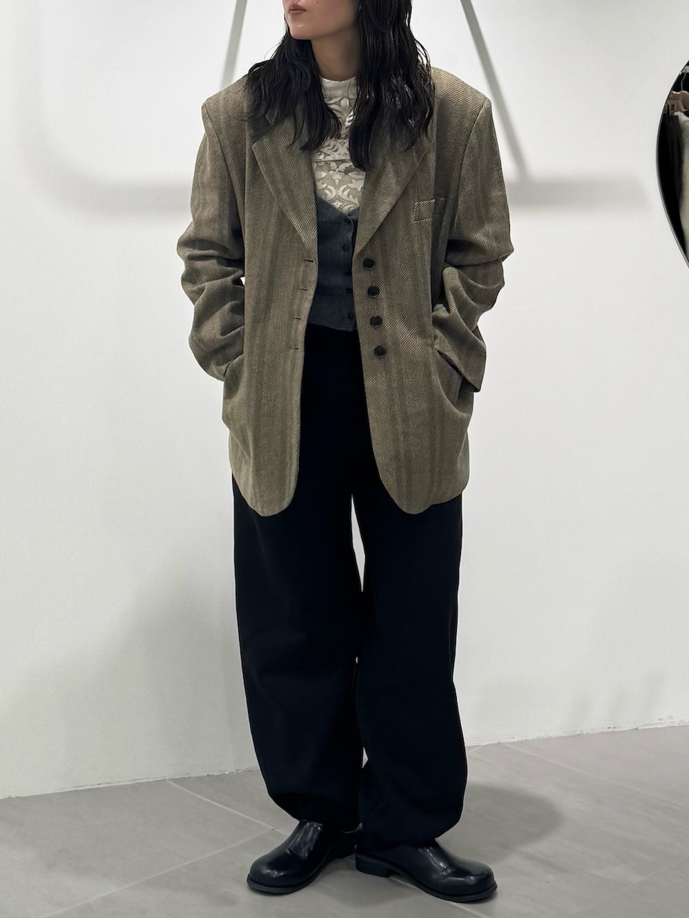 ジャケットは柔らかく軽い且つウールが入っているので暖かさも兼ね備えた万能アイテムです✨