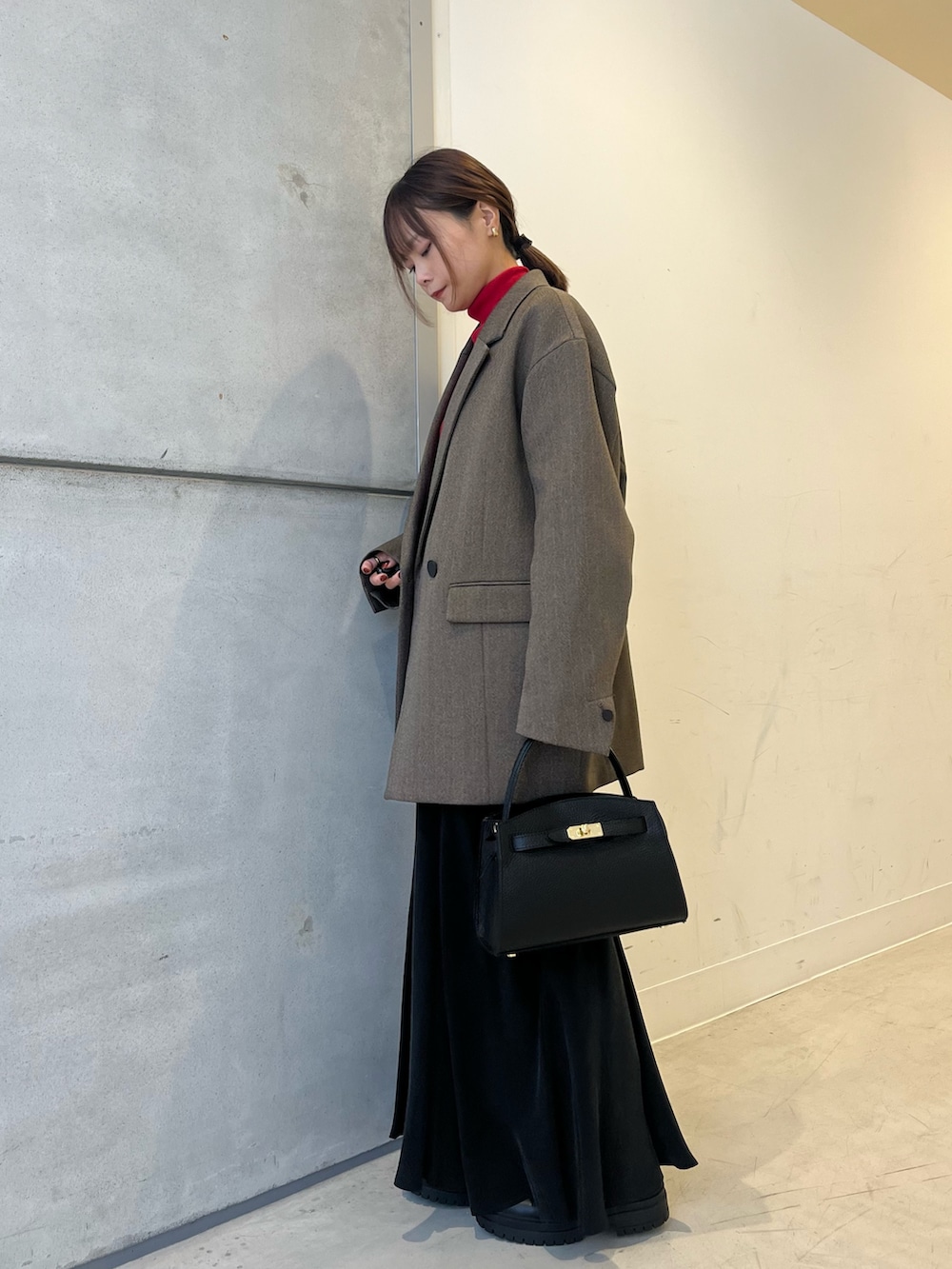 差し色で赤のトップスを合わせました!