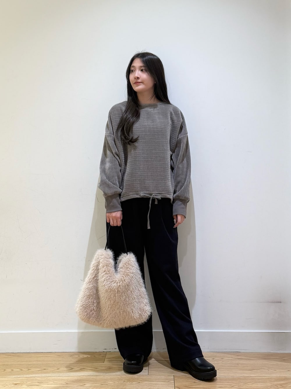 カットコールドロストプルオーバーは、裾のドロストを絞って丸いシルエットできてもストレートできてもかわいいのでおすすめです!
