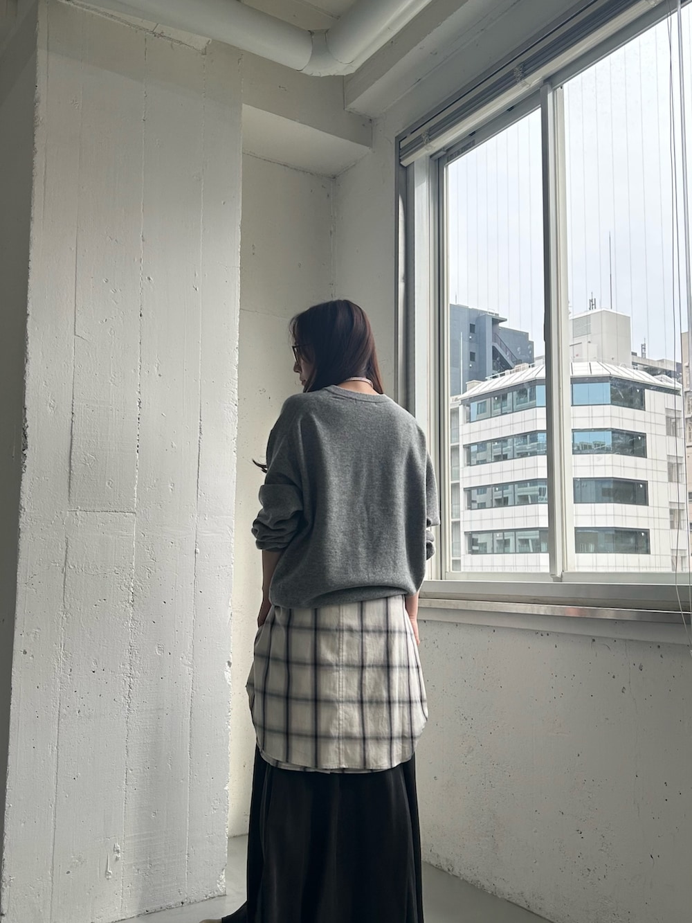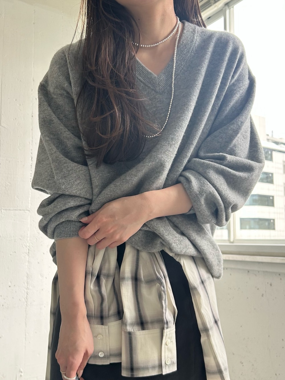 深すぎないvネックなのでインナーが見える心配もないです。ベーシックなデザインで着回し◎