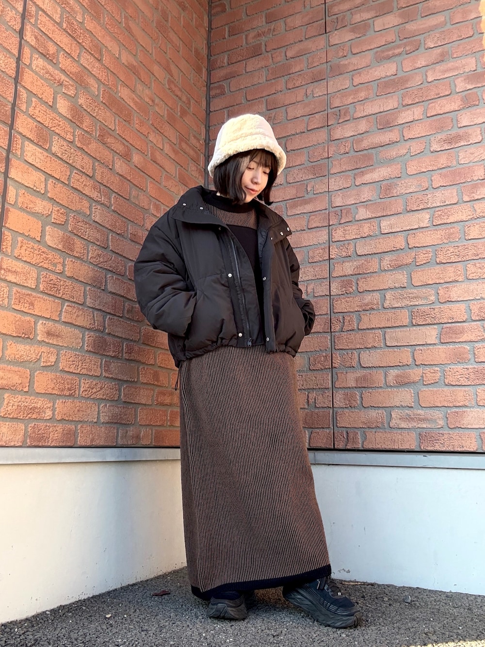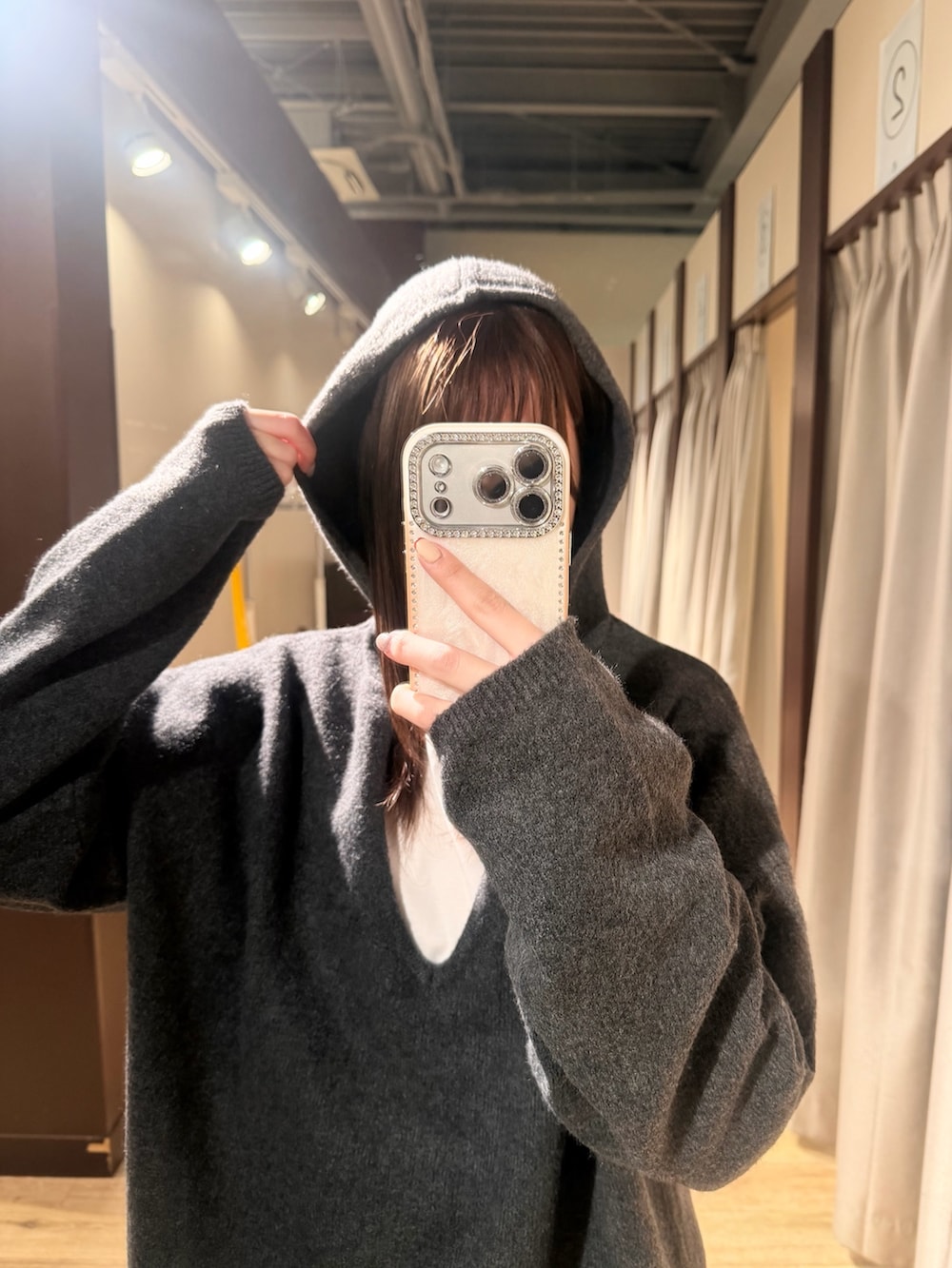 スキッパーフードニットのゆるいシルエットとフードが可愛い🧶🤍