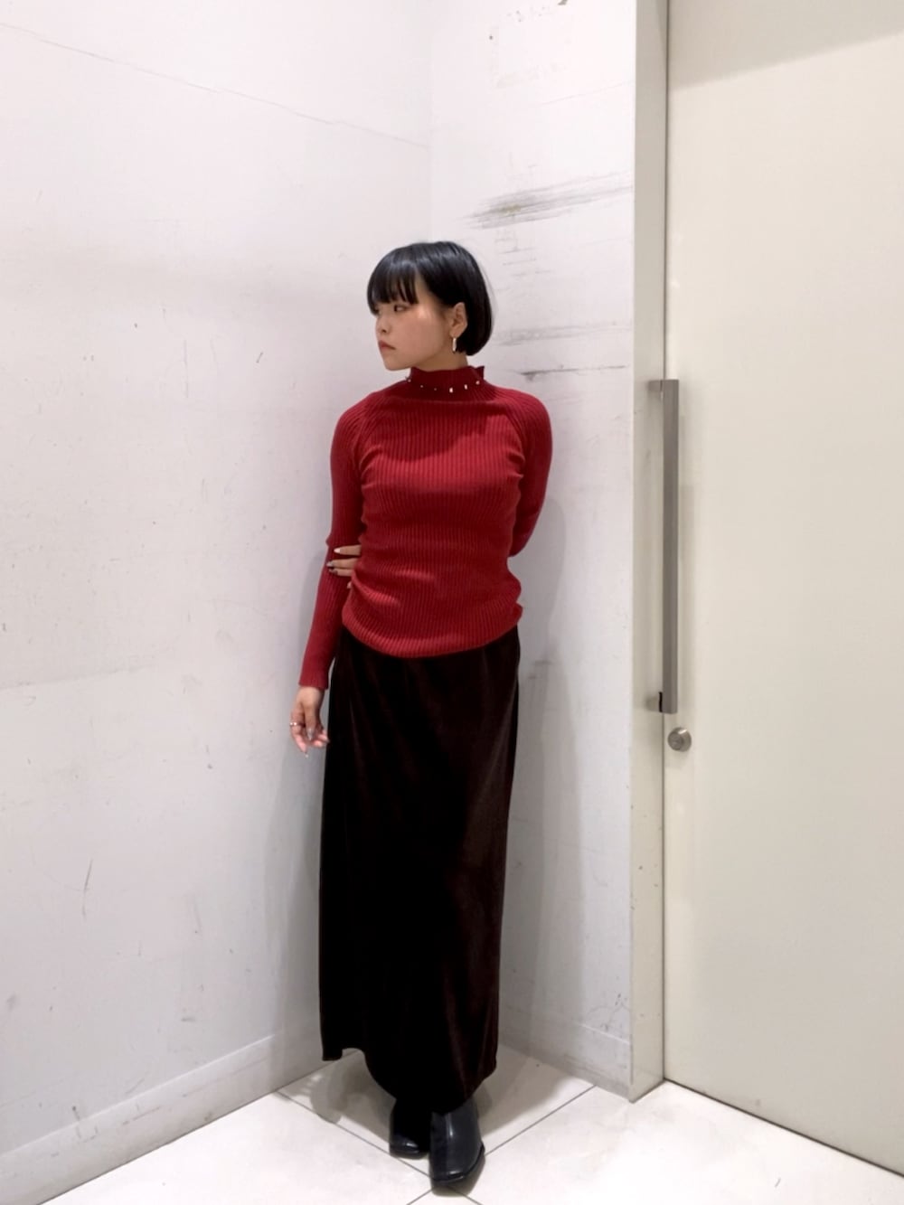 赤ニットとブラウンベロアのスカートだなんてクリスマスを楽しみすぎていて可愛いに決まってるので皆さんもやりましょう🧶🎄メリークリスマス ︎︎♪′