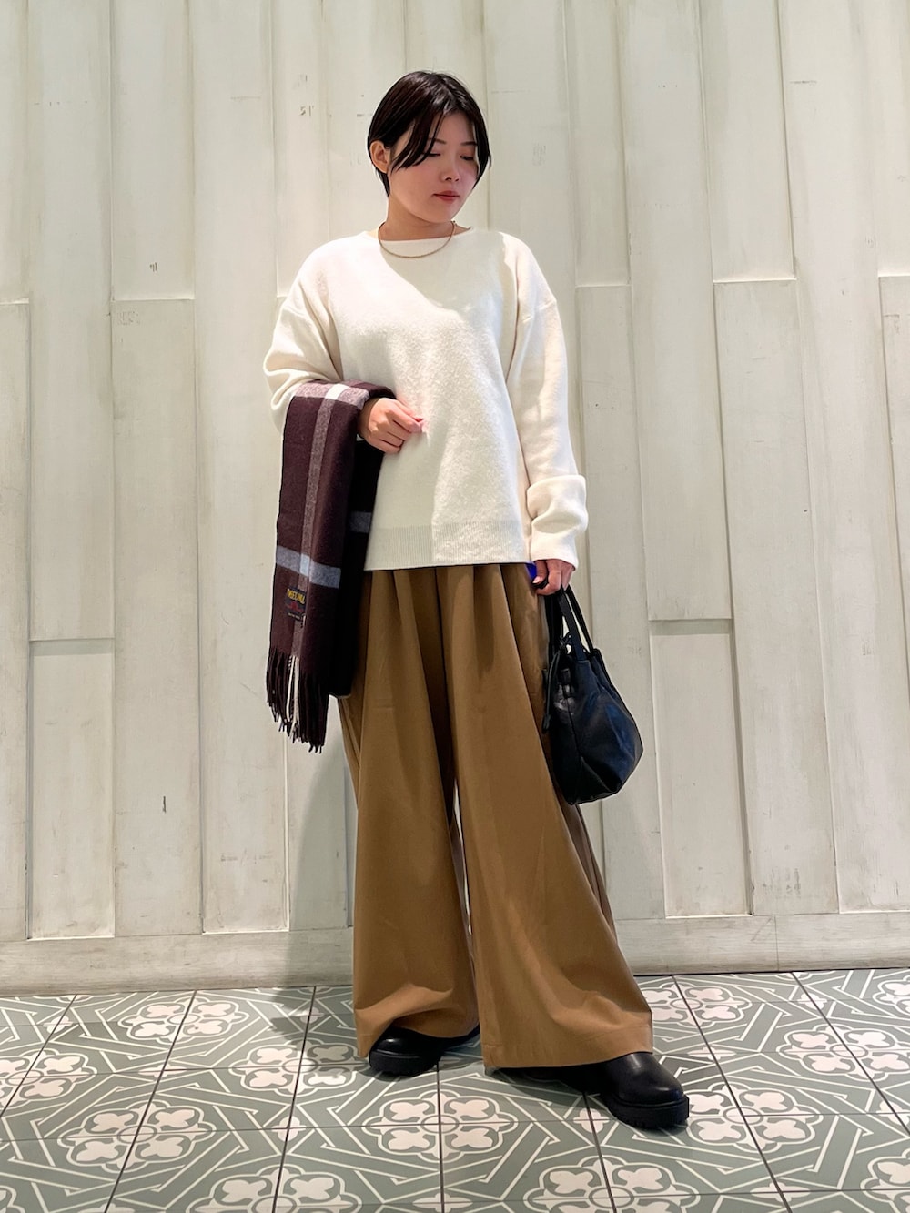 コンパクトなニットで合わせたり、あえてゆるめのニットを合わせるのも可愛いです!