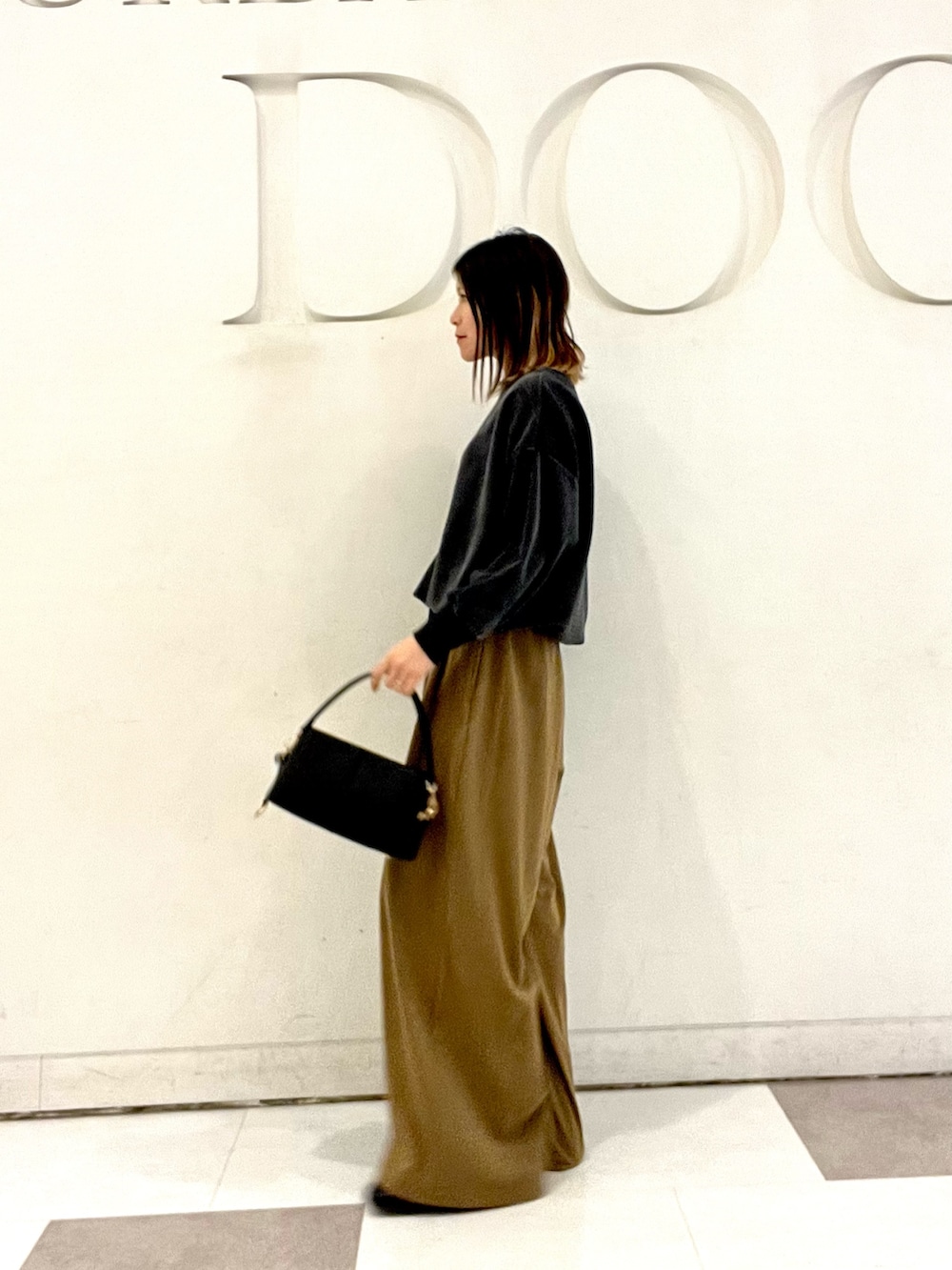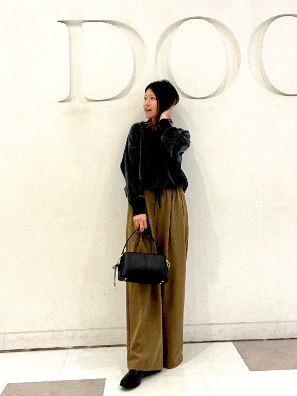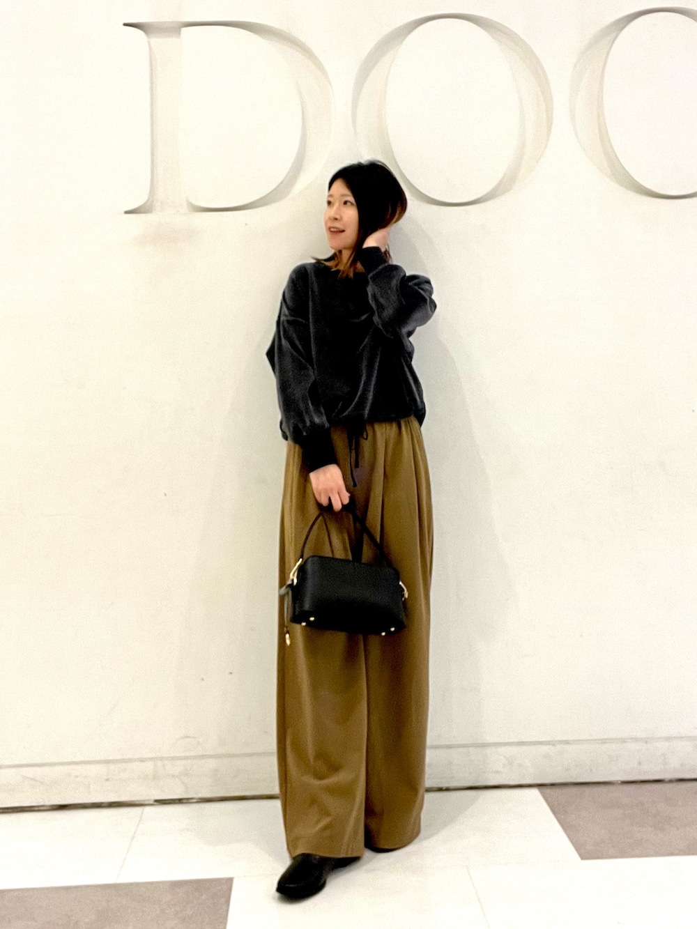 トップスは季節感のある生地で1枚で主役になるアイテムです🧣裾を絞ってシルエットを変えて着ていただけます!わたしは裾を絞って丸みのあるシルエットで着用しています^^
