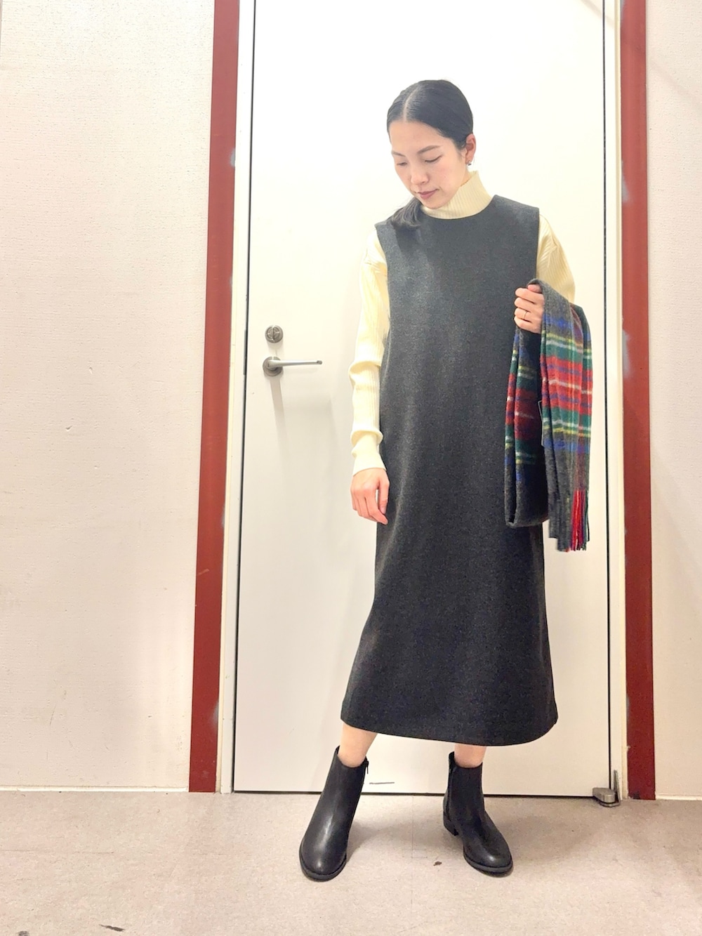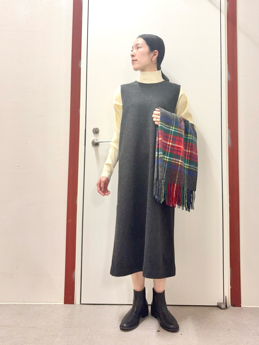 温かみのある素材で冬に活躍するジャンパースカートです☺️