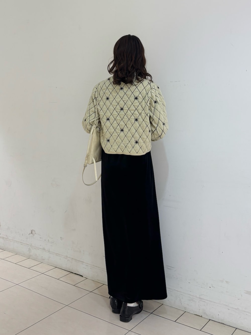 ベロアナロースカートはウエストがゴムなのでストレスなく履けます✨