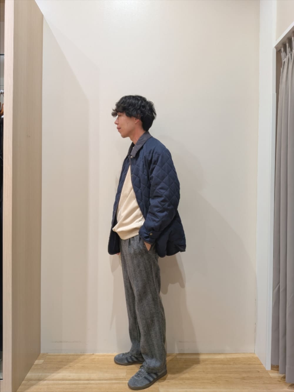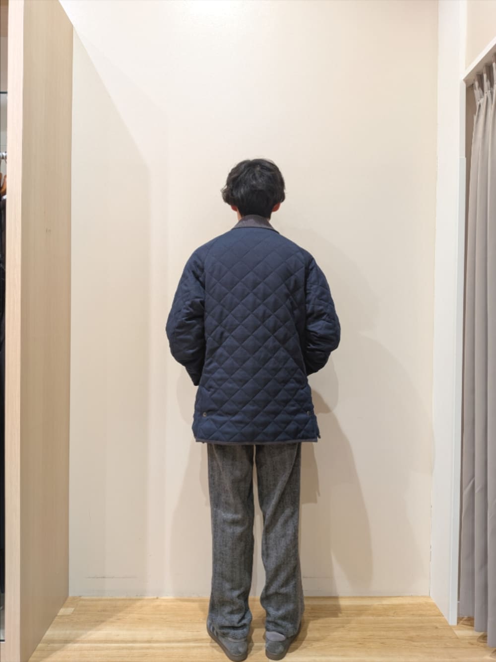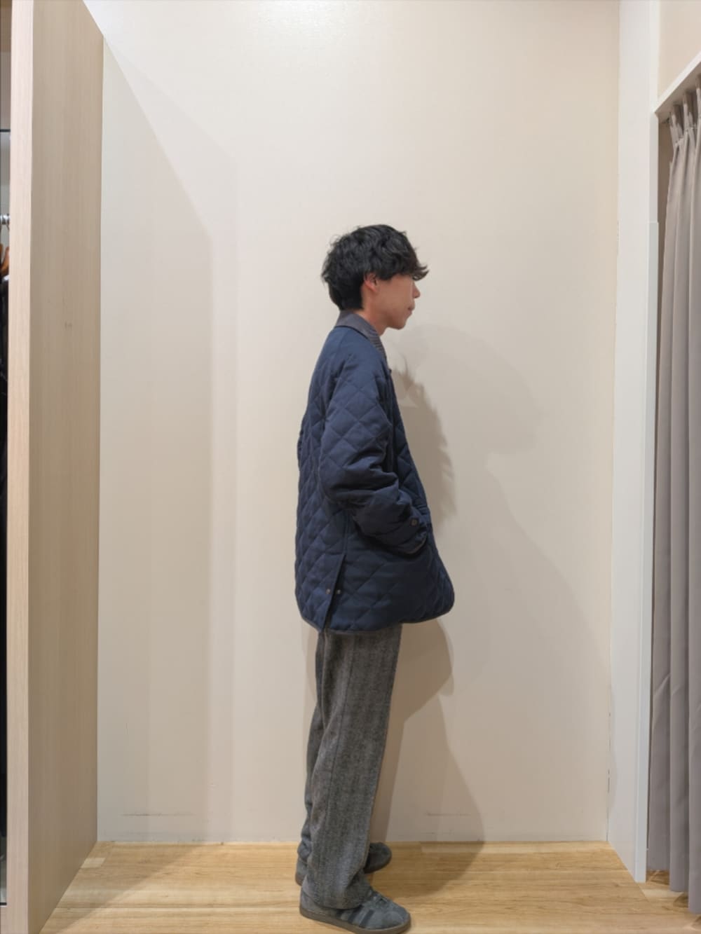 中綿ジャケットは肩幅狭めになりますので、体型がっちりしている方はLサイズおすすめです。