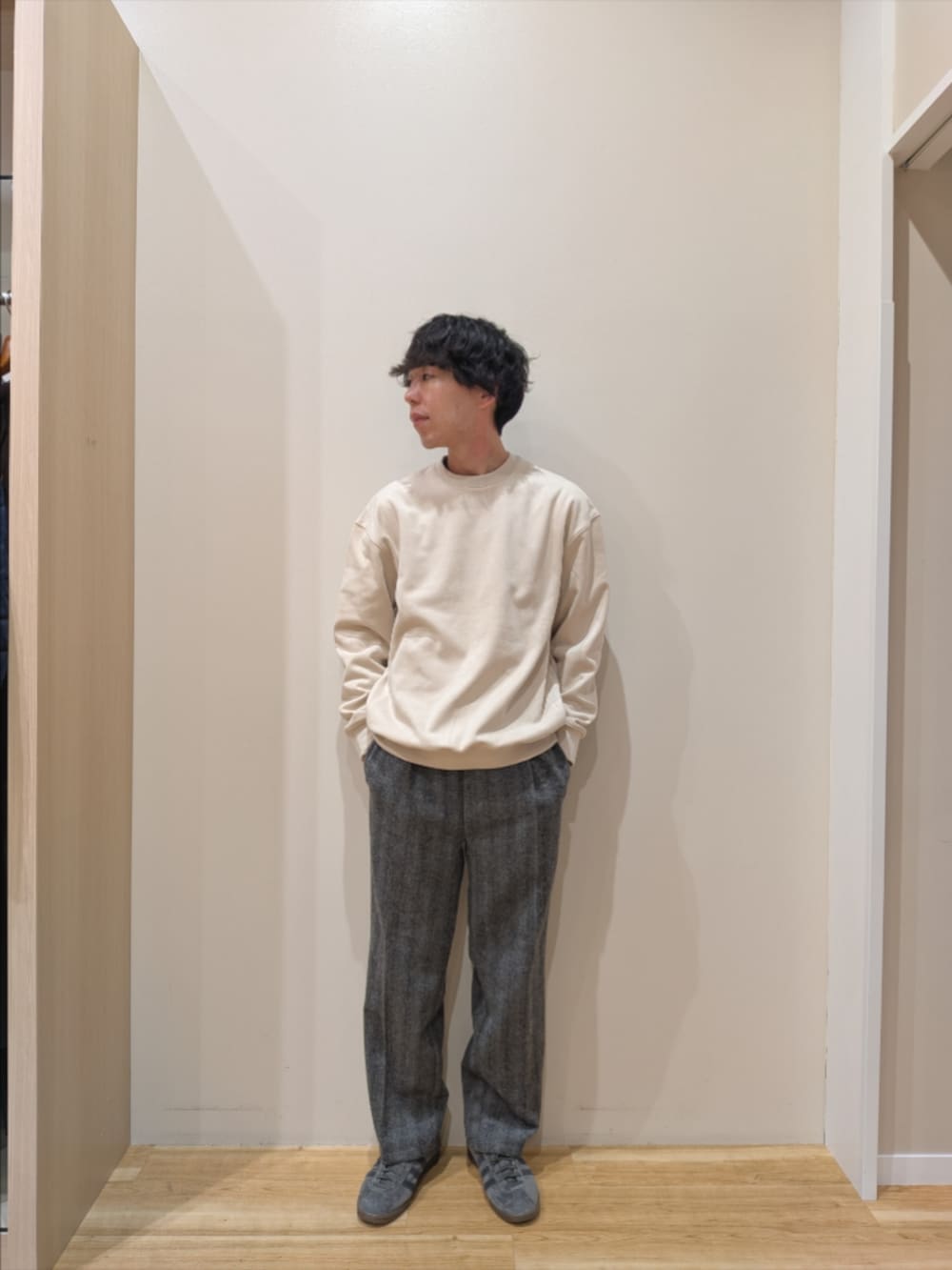 ヘリンボーンのスラックスがメインの秋冬スタイルになります。