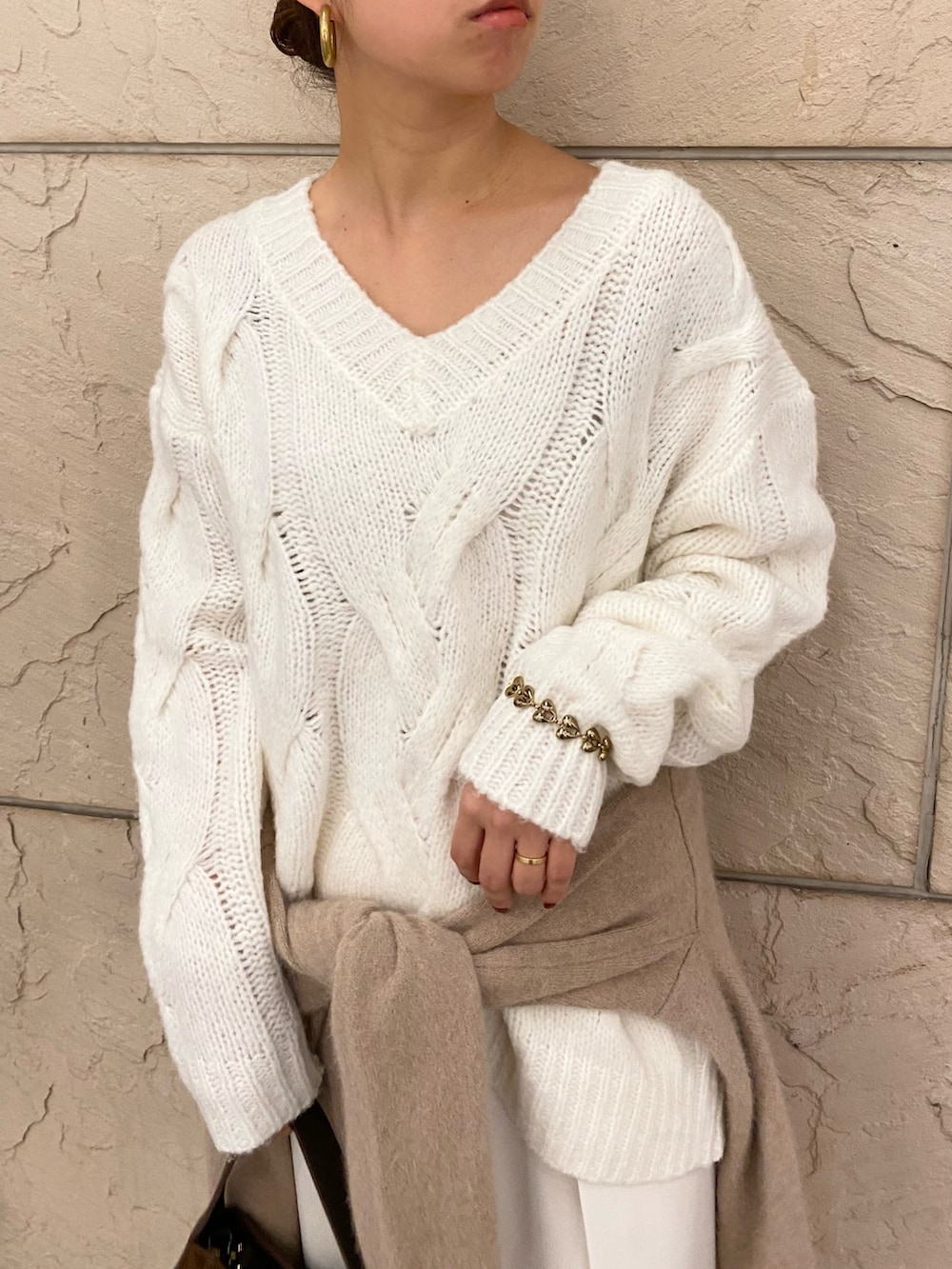 ROSSOウールカシミヤケーブル編オーバーニット- 着用カラー: