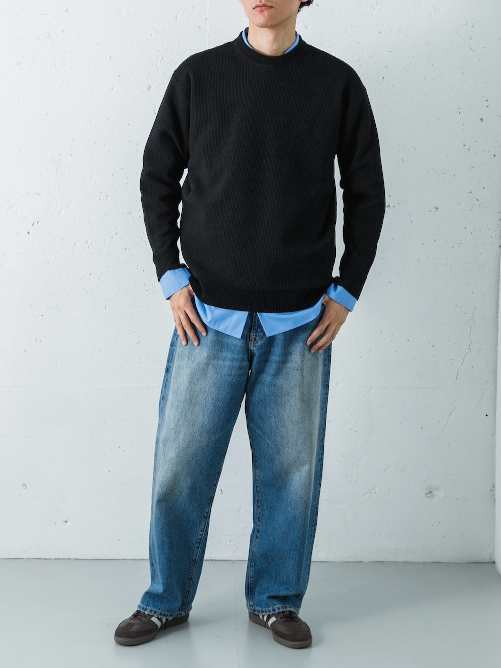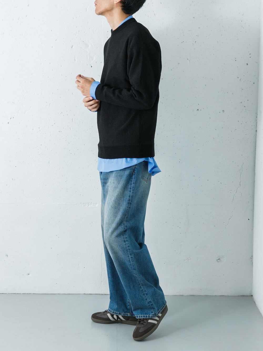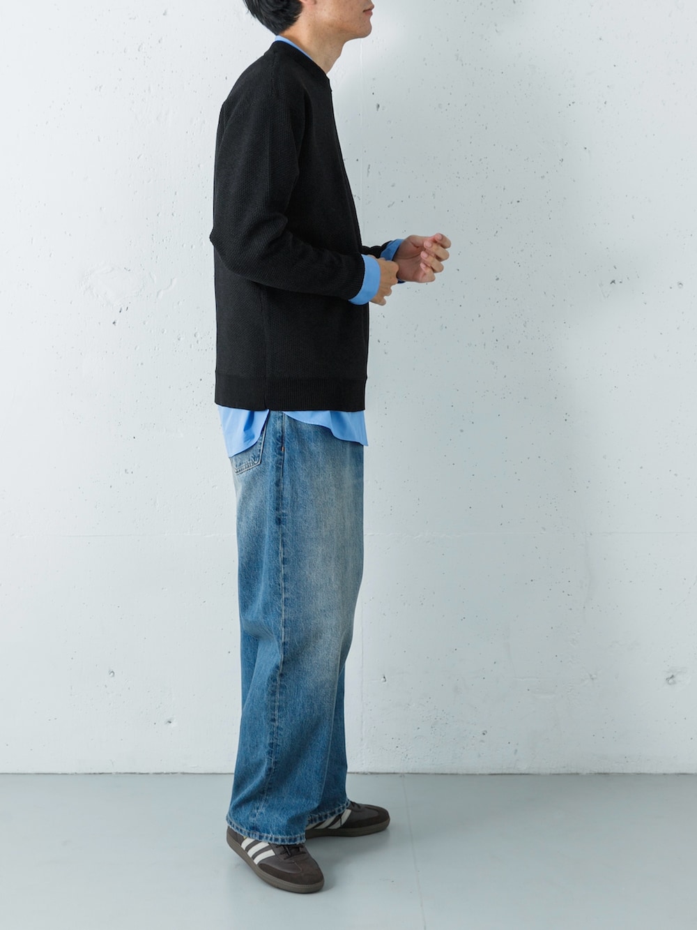 足元には別注のサンバを合わせることで、モダンな軽快さを加えた、都会的なカジュアルミックスです。