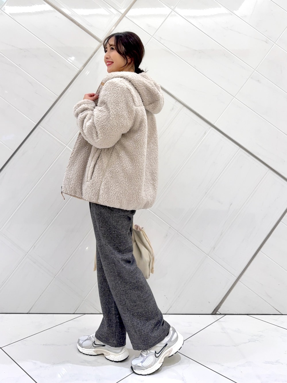 実際に持っていて、内側をボアにするとかなりタイトなサイズ感になるので私は写真のように外側をボアにして着ることがほとんどです。