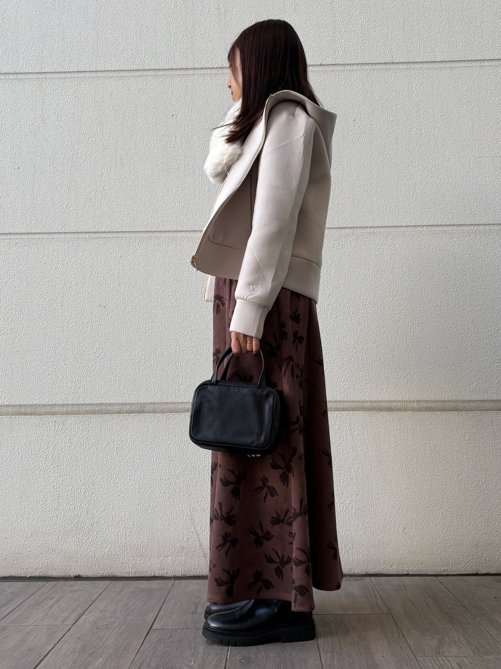動きやすくシワになりにくいフレアスカートで、秋冬の上品なコーディネートにしました🍂⛄️🤍
