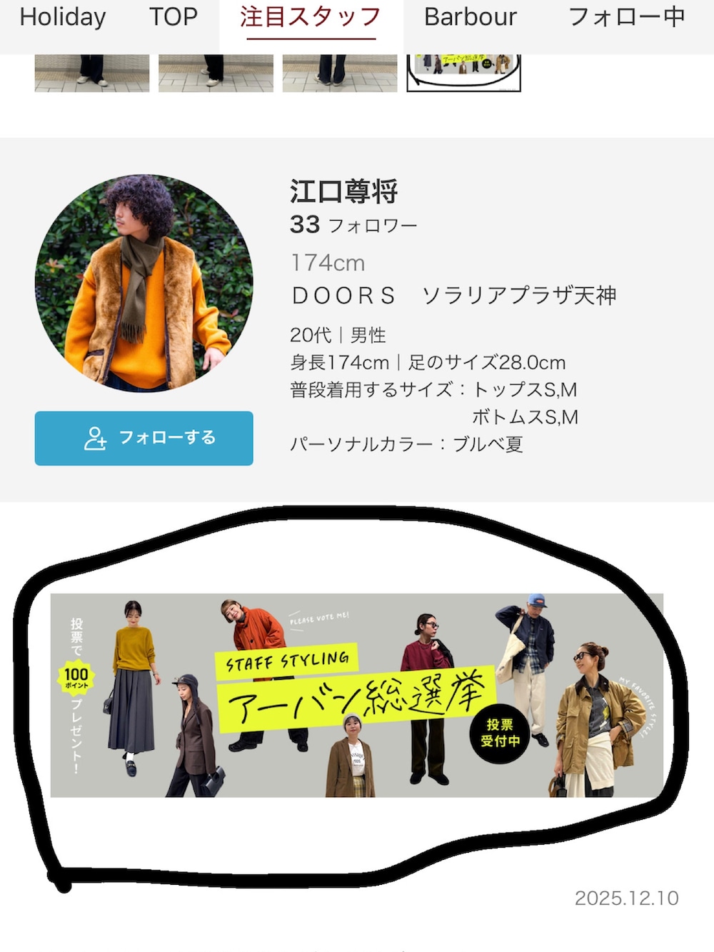②スタッフ一覧から投票するを押していただくと投票できます!