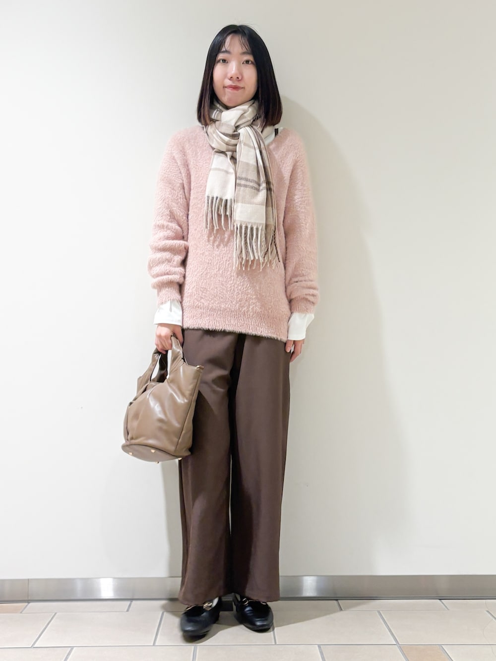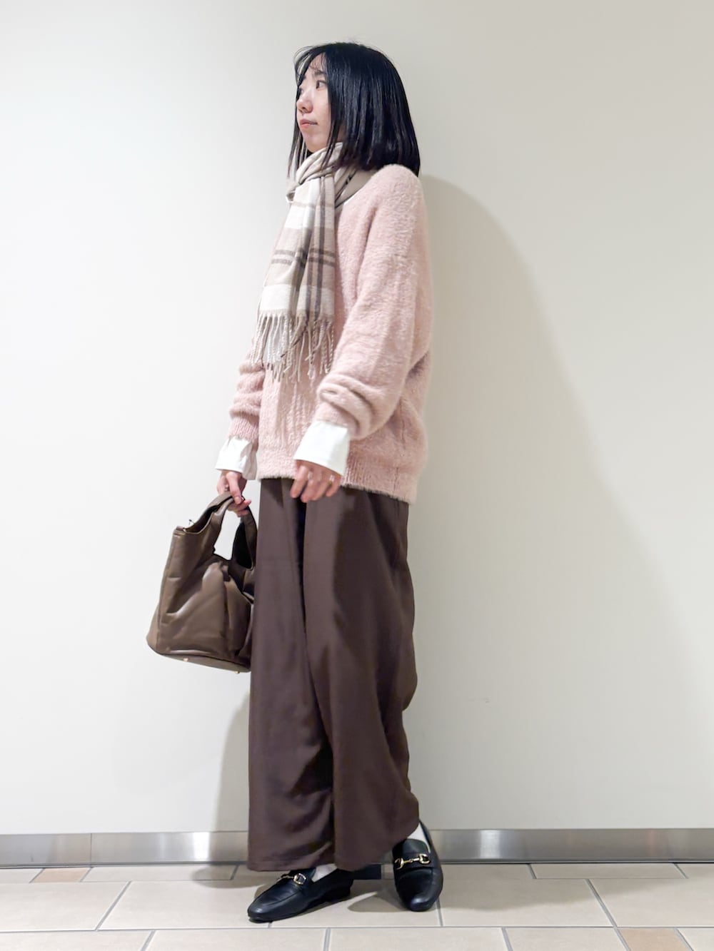 BEGカラーですが実物は少しピンクがかったお色味です!シャギーのふわふわと色がマッチしていて優しい印象になります^^
