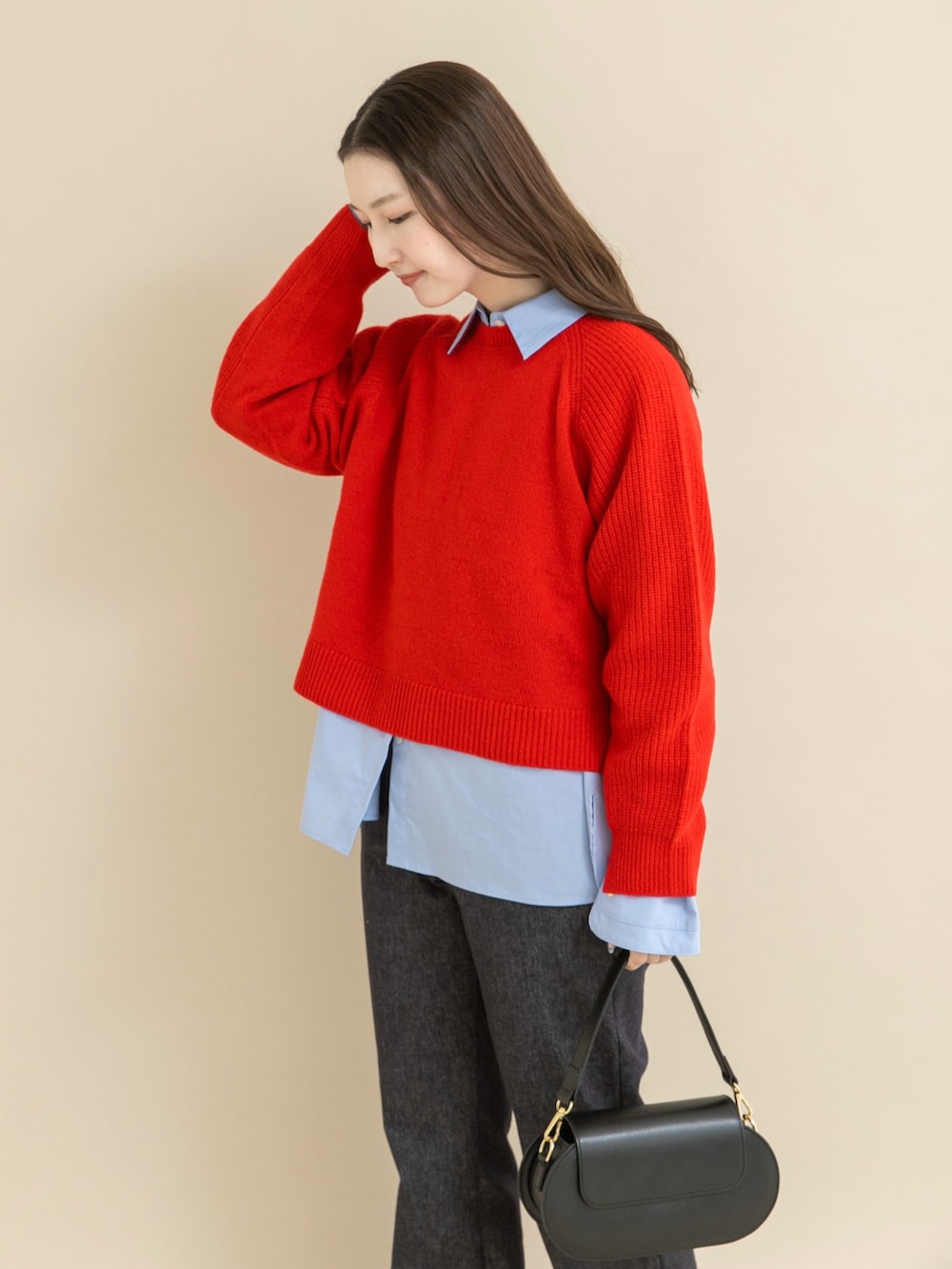 スッキリとした丈感なので、ボトムスを選ばない万能ニットです◎