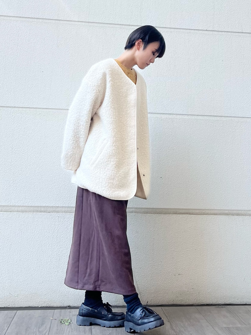 カラーのニットに白アウターで冬をオシャレに⛄️