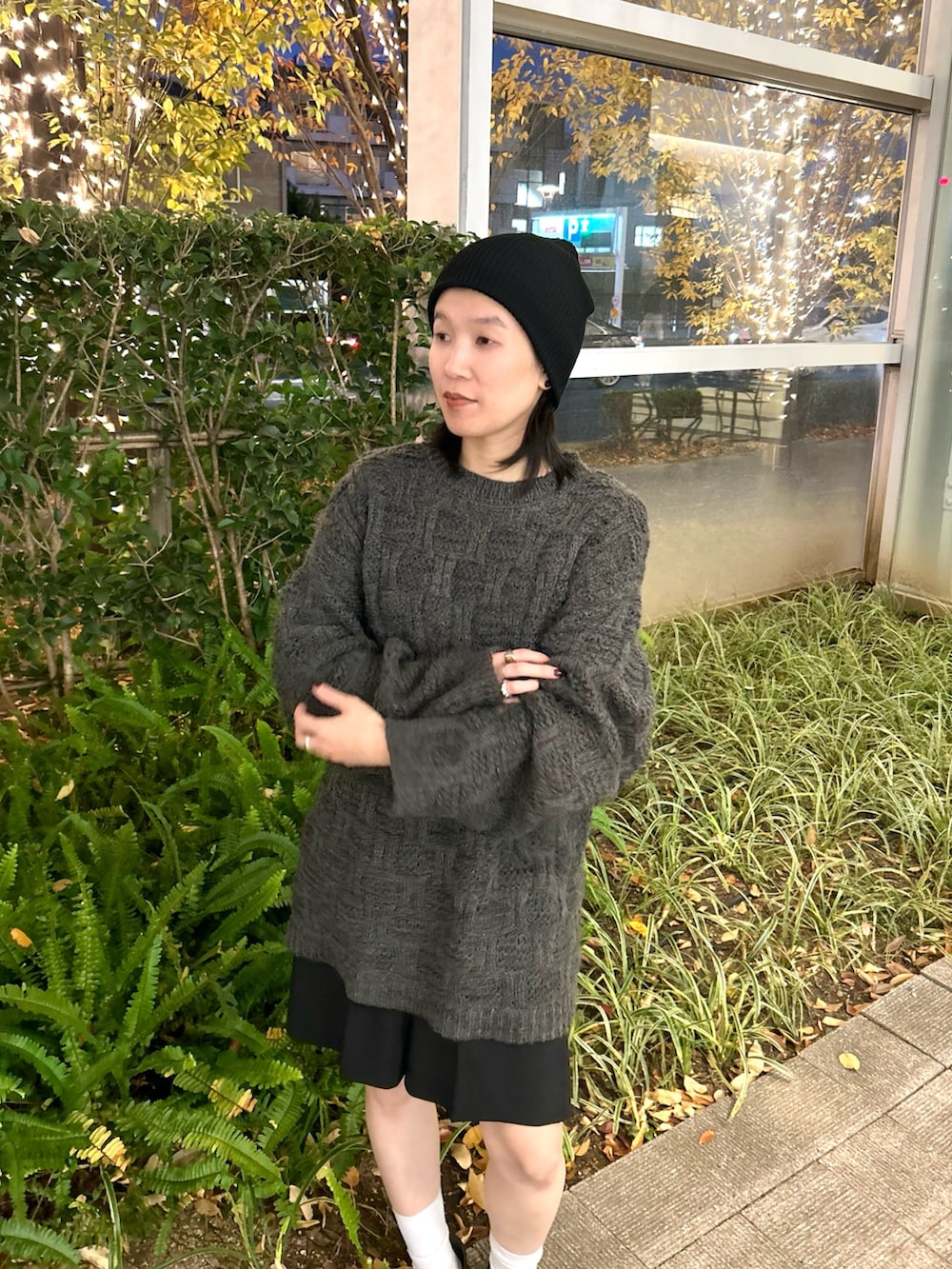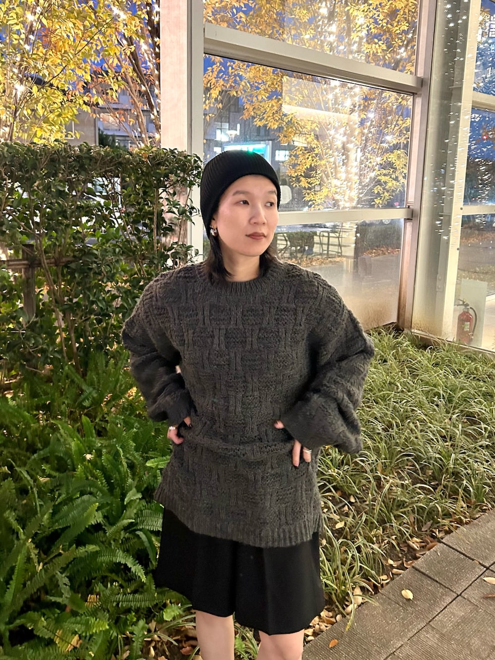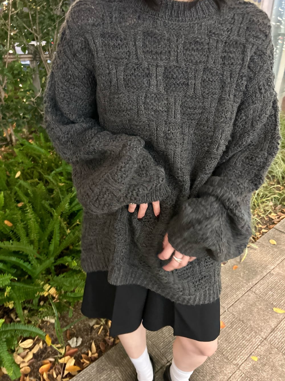 ポコポコとした立体的な編み地がアクセントになっているニット