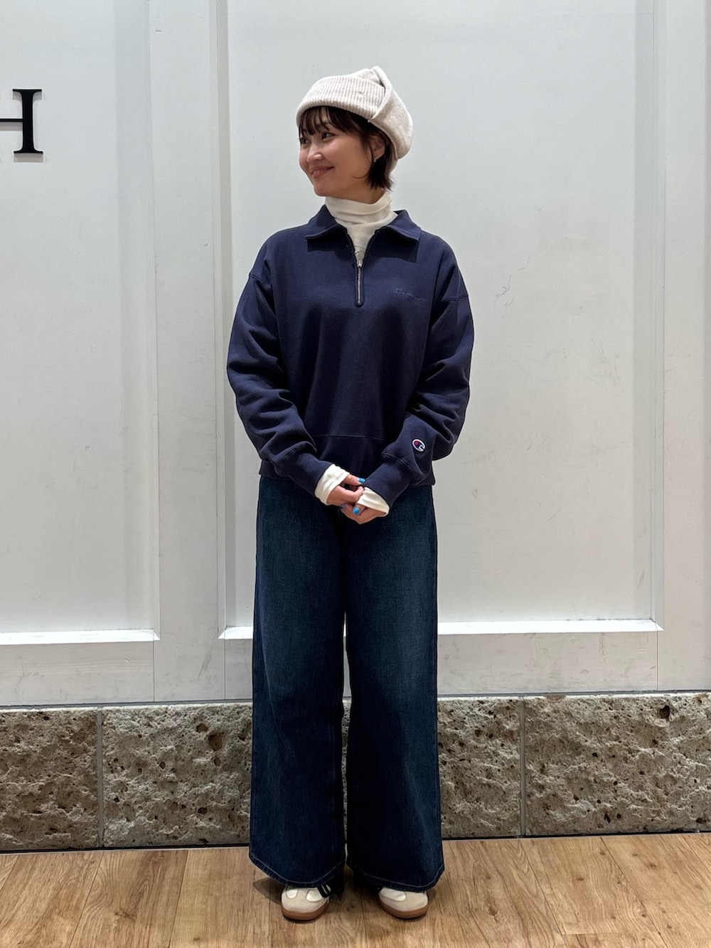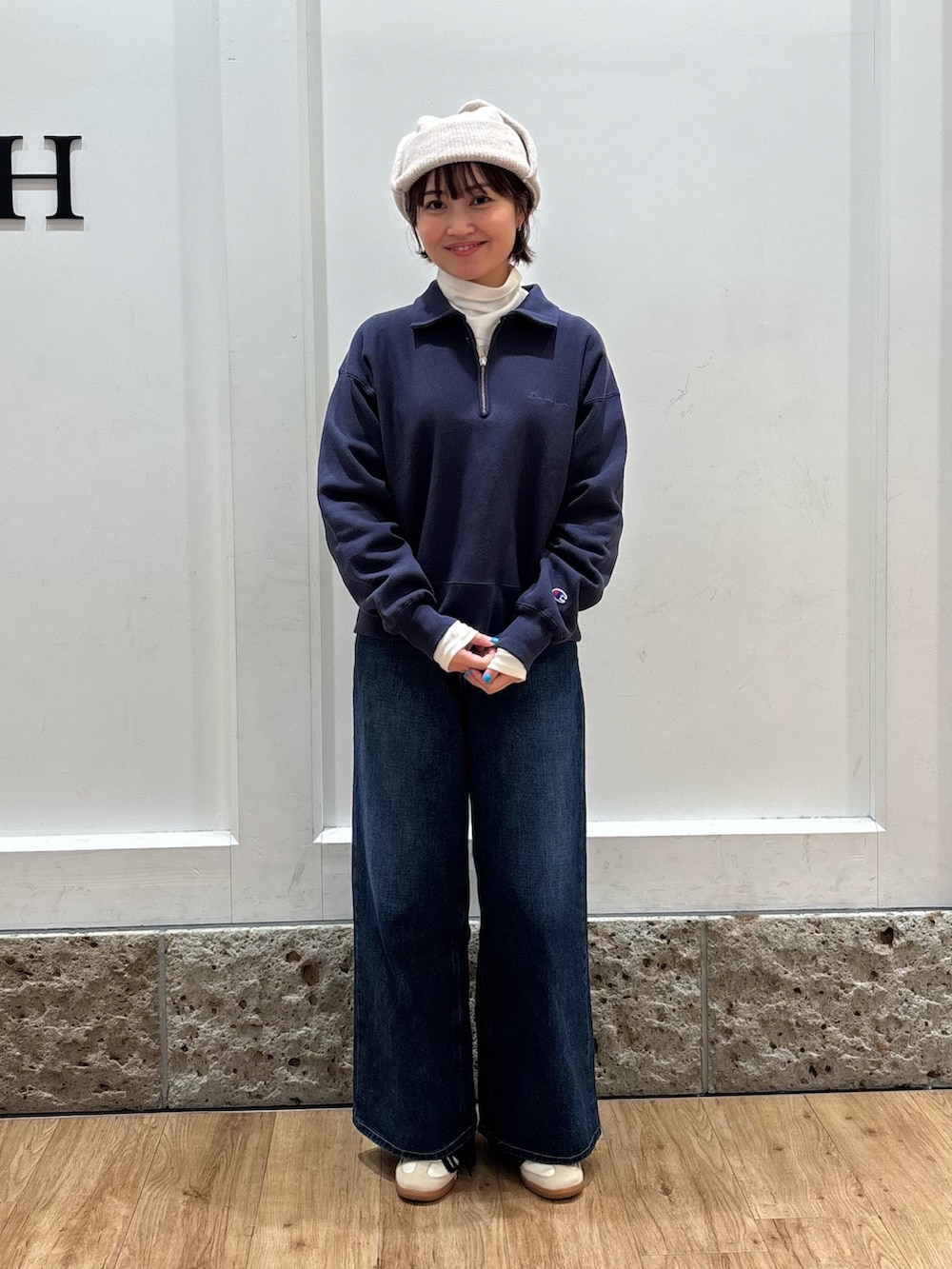 チャンピオンのスウェットは起毛ですが着膨れせずに着ることができます◎