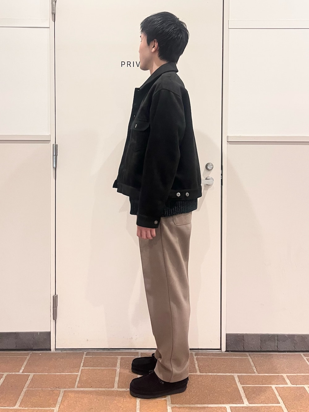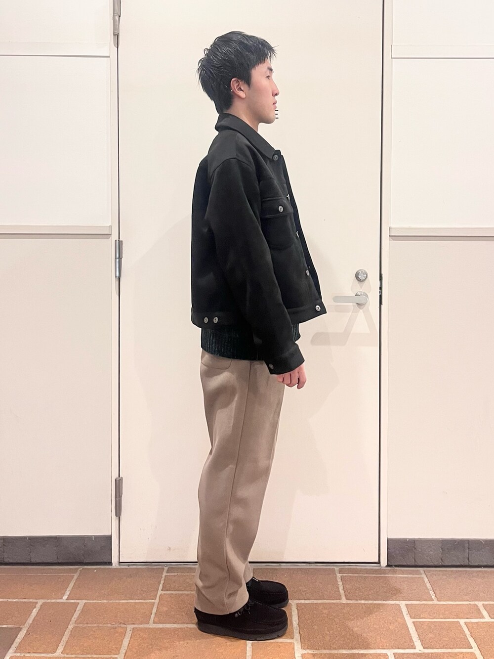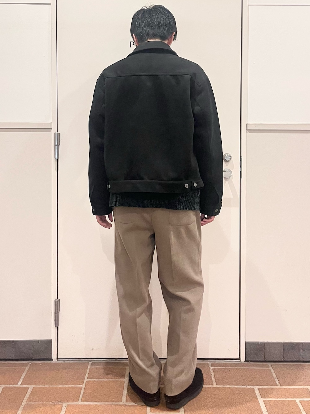 フェイクスウェードのジャケット、丈短めで好きな人多そうなシルエット