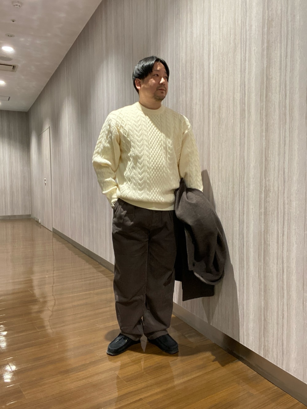 肩や身幅も広めのシルエットで中にもしっかり着込めます。