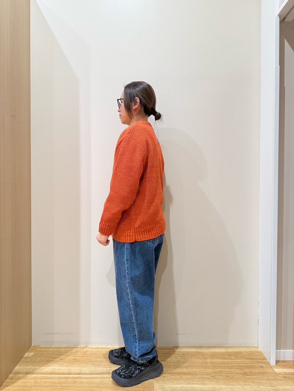 今回は鮮やかなオレンジニットが主役の冬カジュアル。