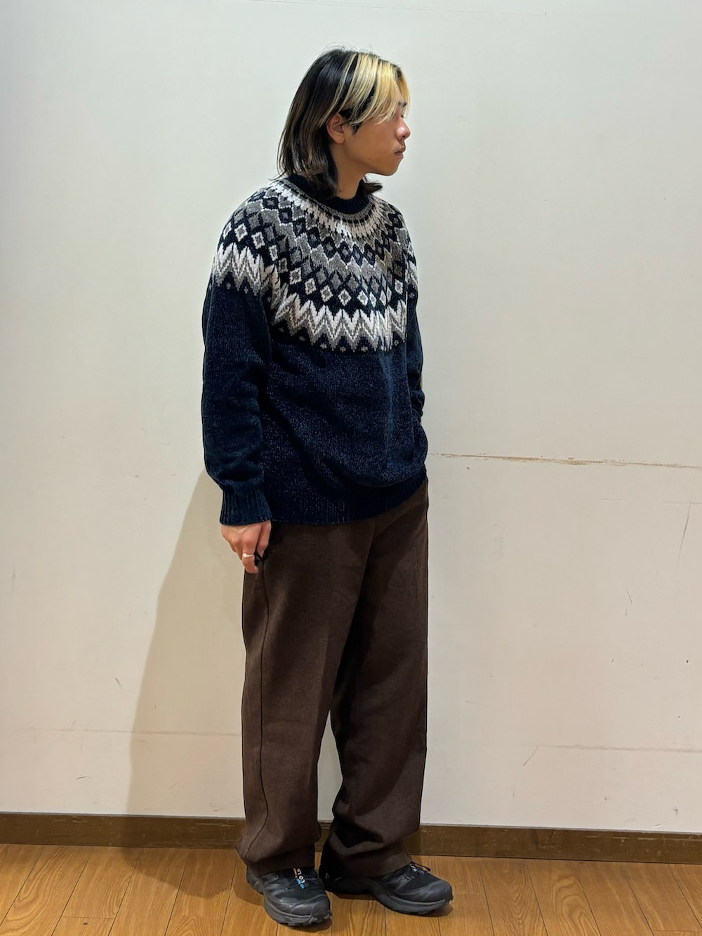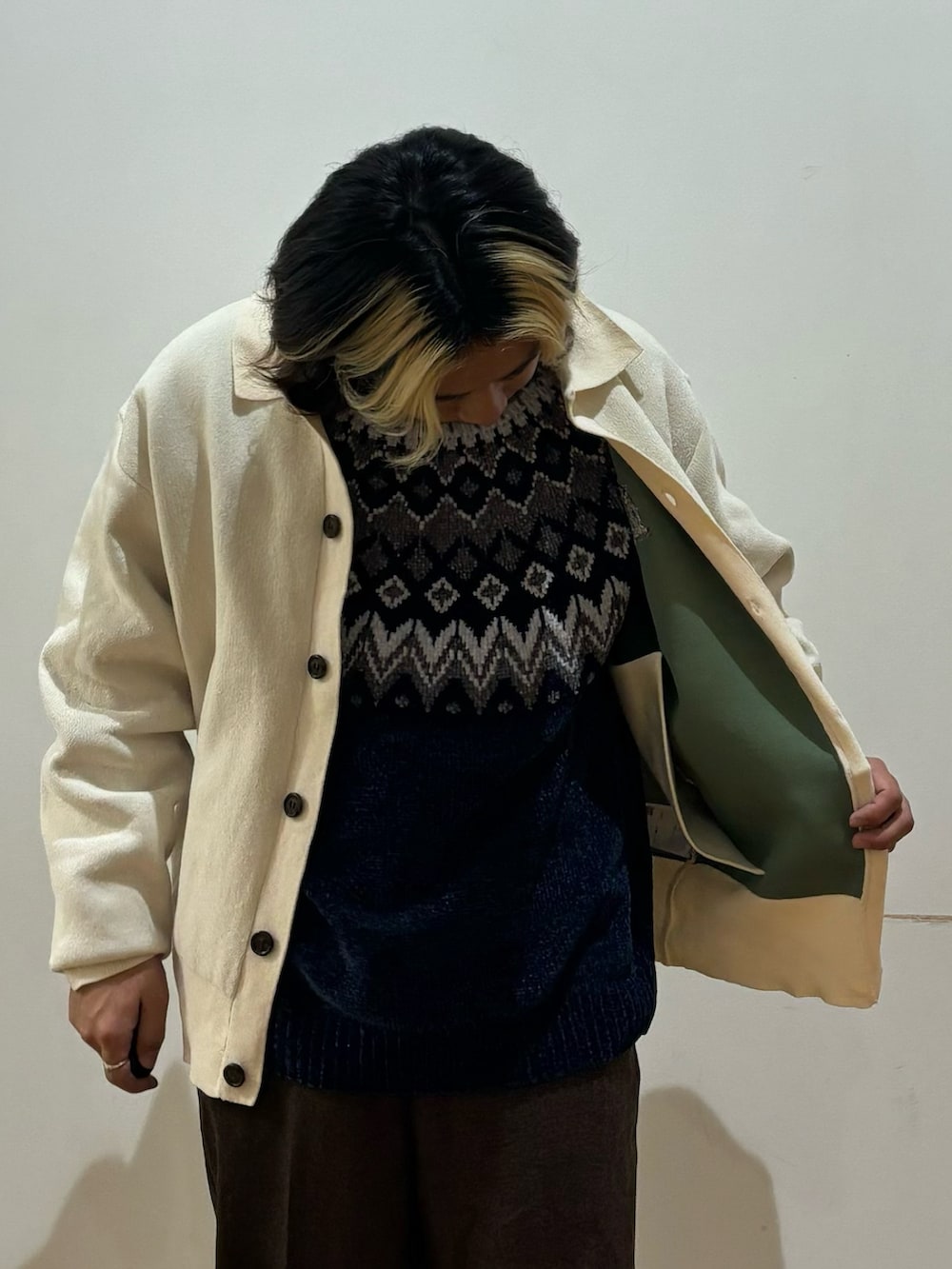 インナーのニットは模様が特徴的ですが、主張しすぎないので着ていて違和感はないです!