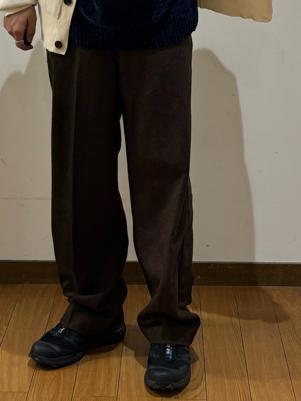 ややワイドですが、テーパードがかかっており、シルエットがいいです!暖かいので冬にぴったりです!
