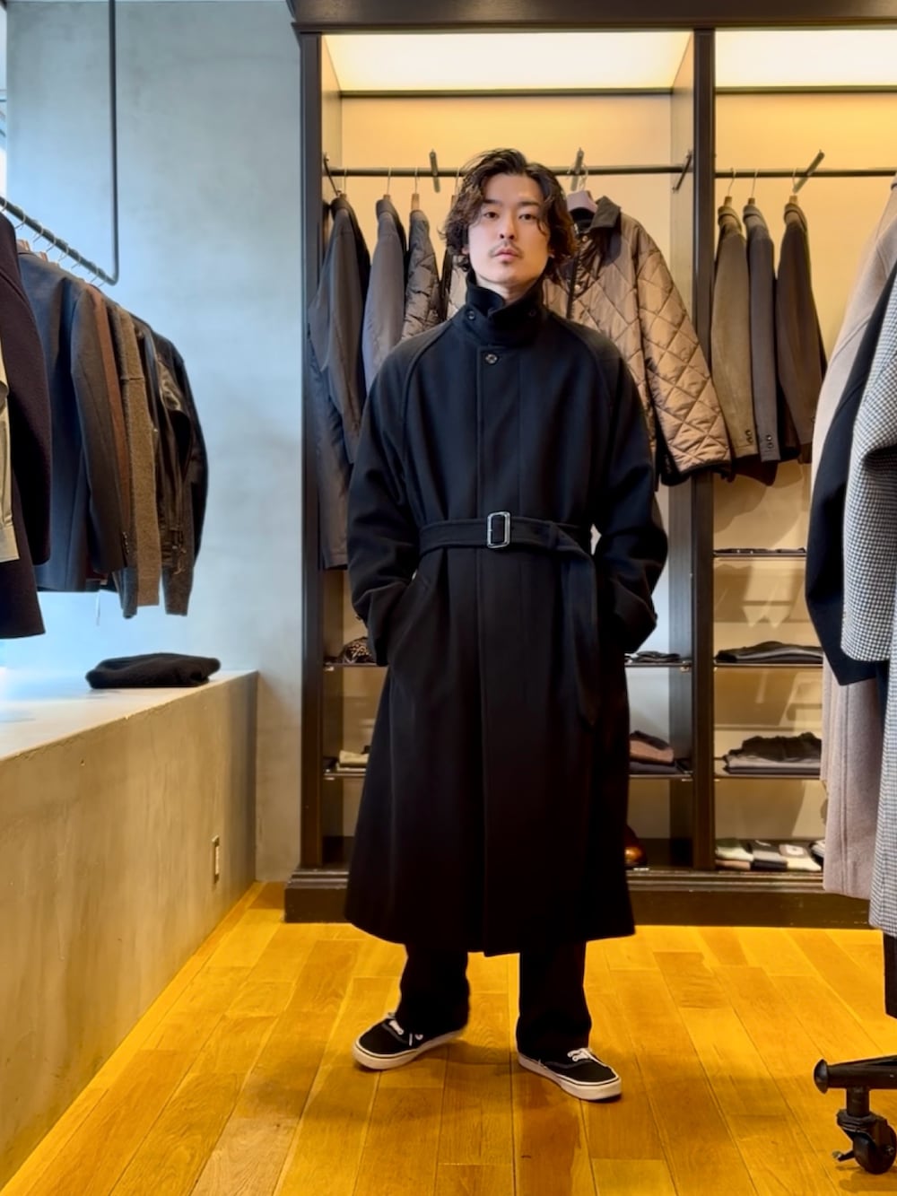 こちらのウールコートベルトもついていてガウンっぽくも。