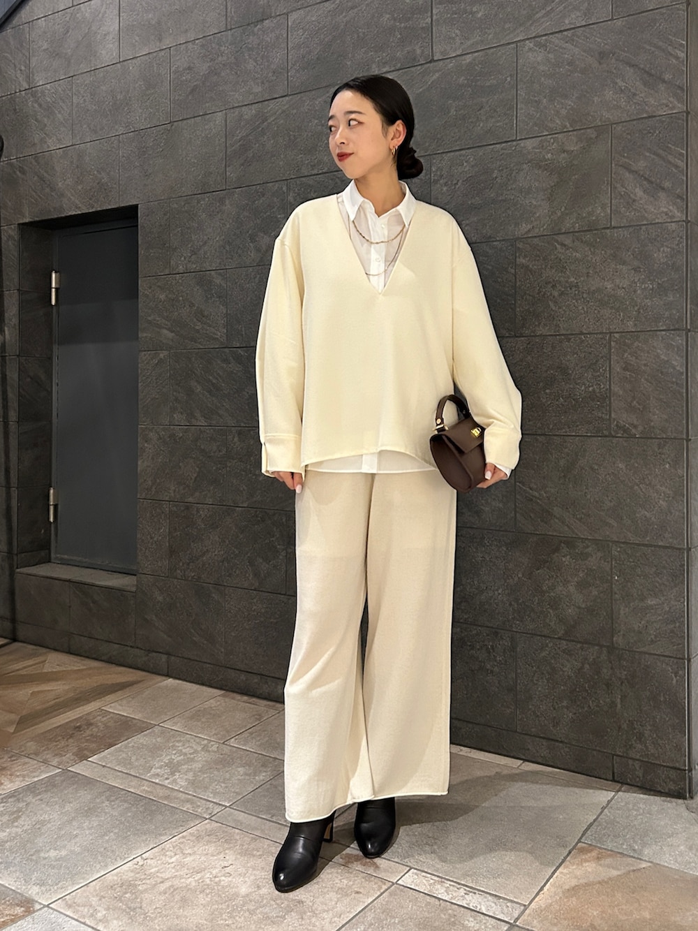 深Vのトップスはレイヤードが楽しめるのでとってもおしゃれな印象に!
