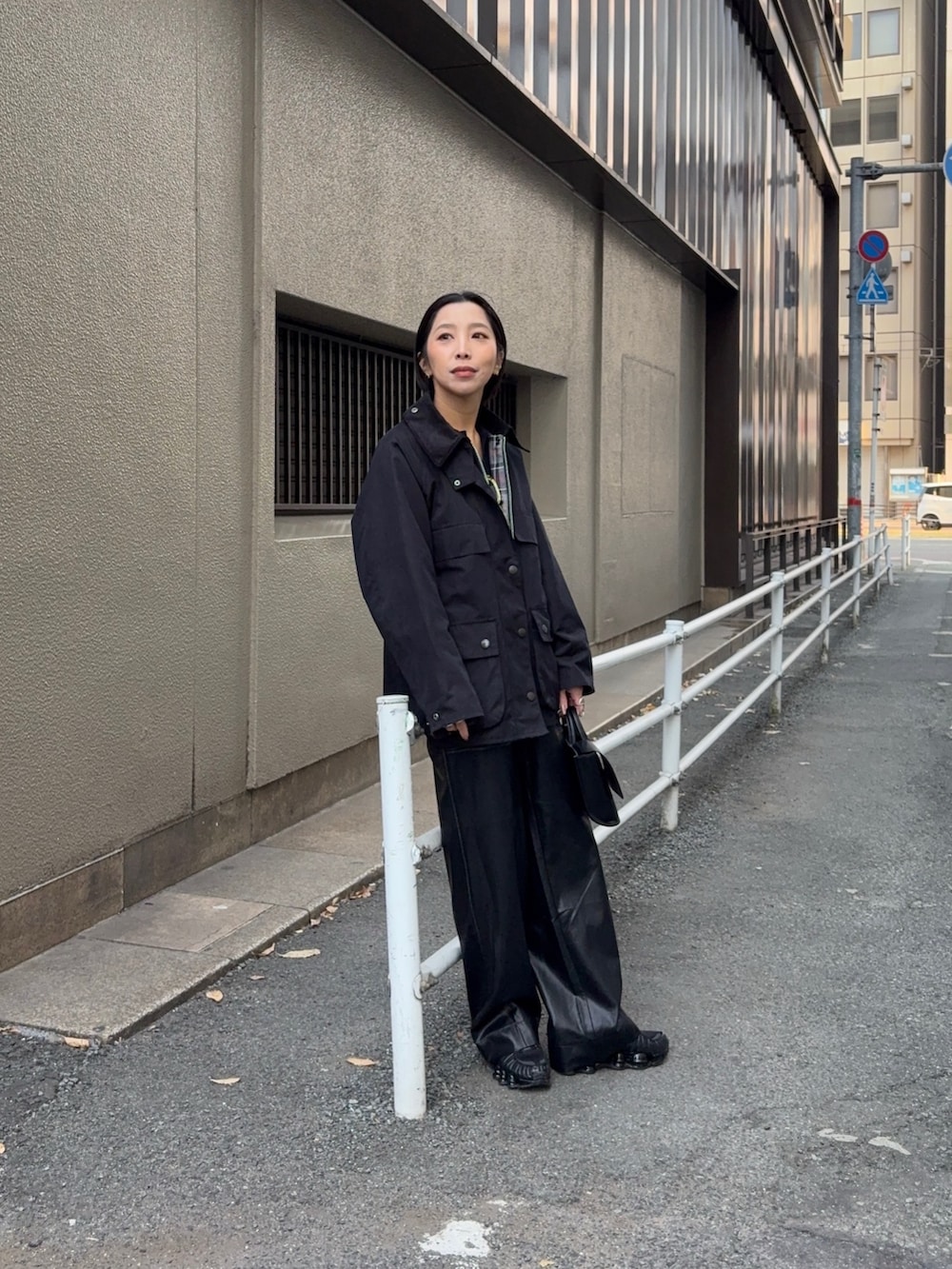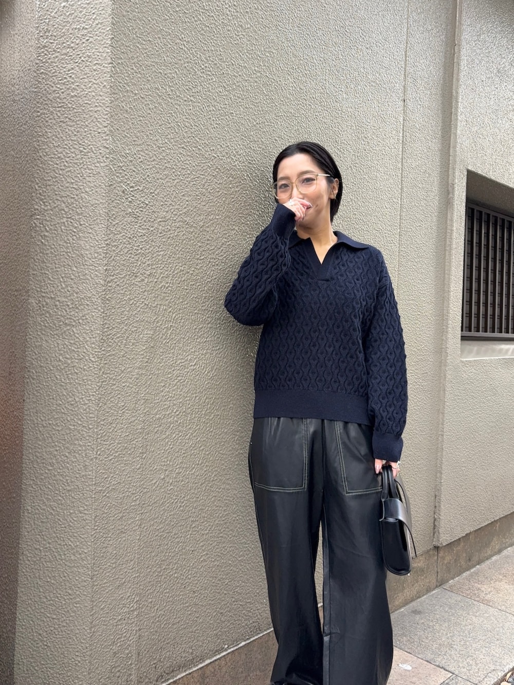 フェイクレザーの艶感との組み合わせもお気に入りです♪