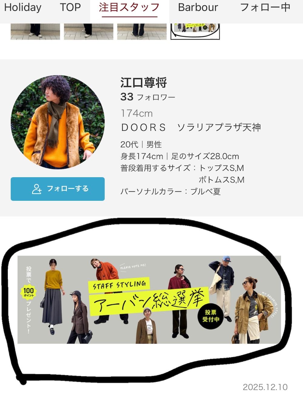 アーバン総選挙ファイナリストまで選ばれています!皆様ぜひ応援の一票をよろしくお願いいたします!アーバンリサーチのアプリから30秒程で投票可能です!