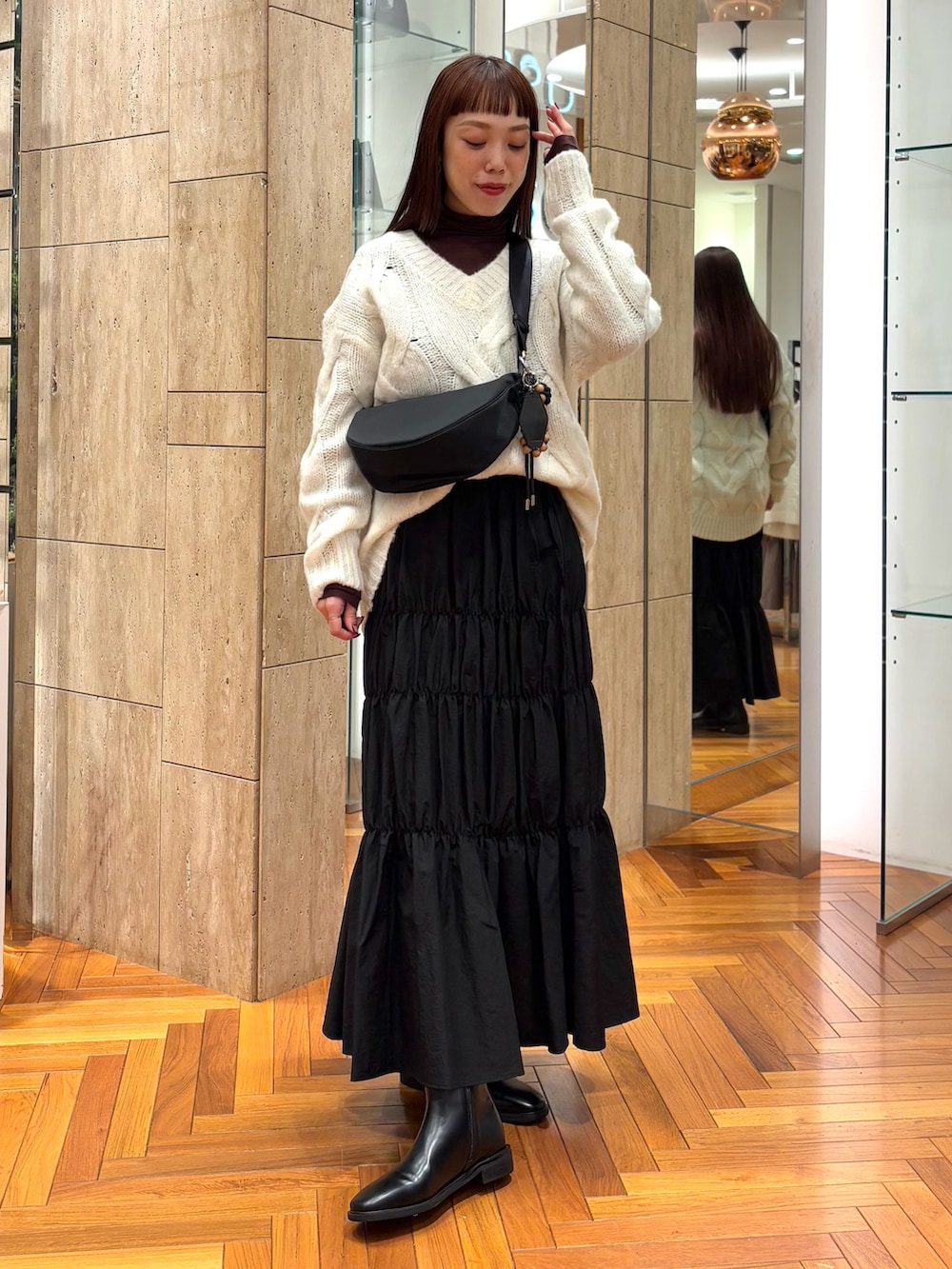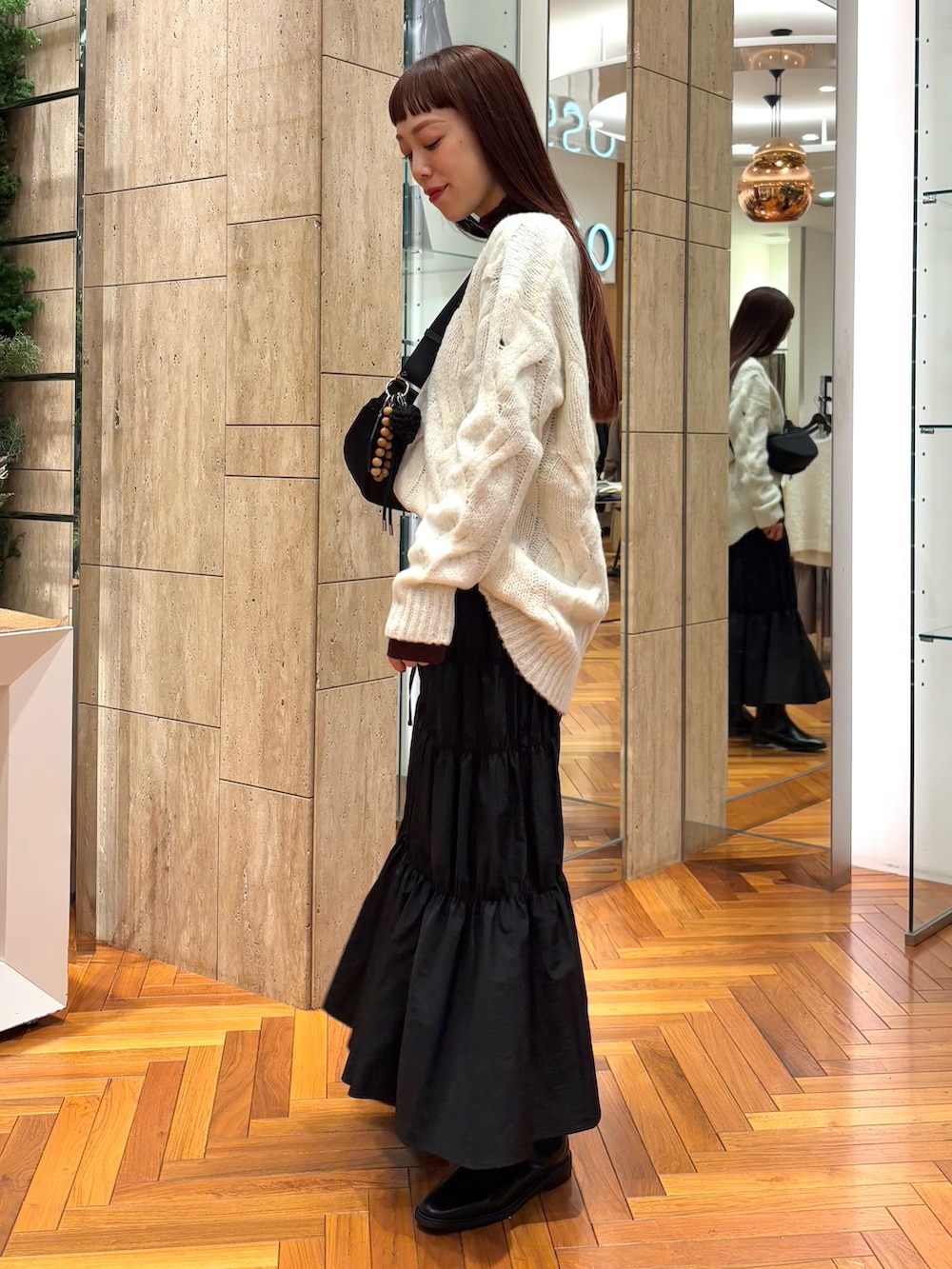 新作のケーブルニットを着てみました♡