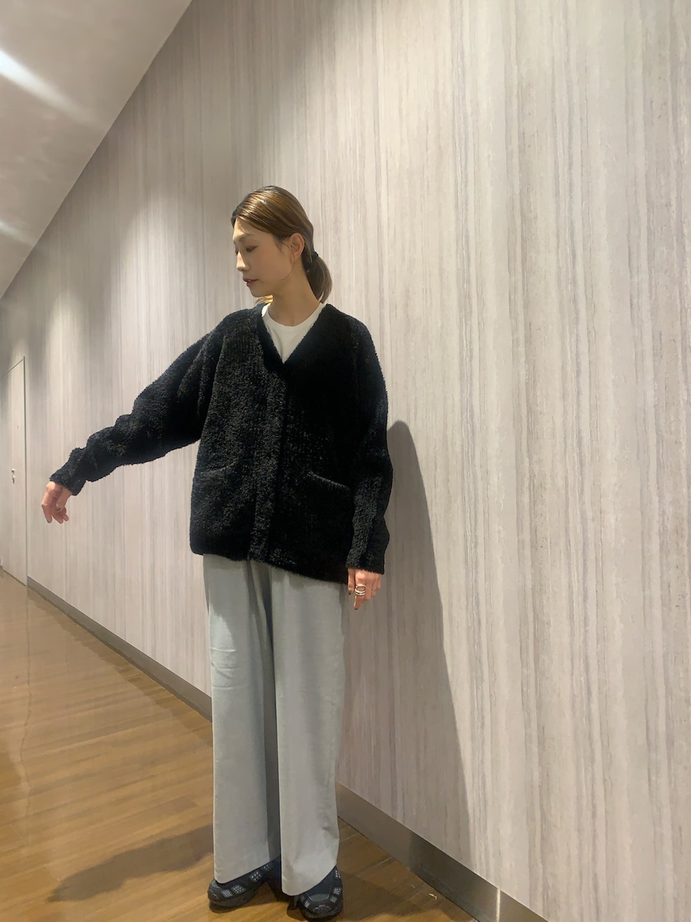軽くて程よくしっかりした質感のため、メインにもなり上からアウターも着られるサイズ感です。