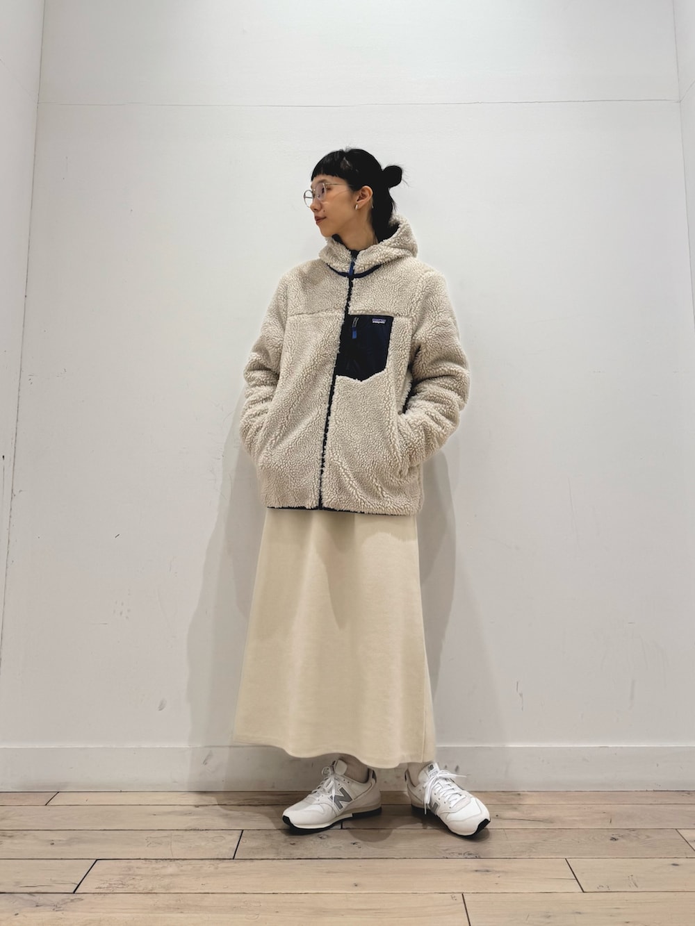 PatagoniaのボアジャケットはキッズのXXLサイズなので、程よくコンパクトなサイズ感です◎リバーシブルなのでしっかり暖かく着れます☺️