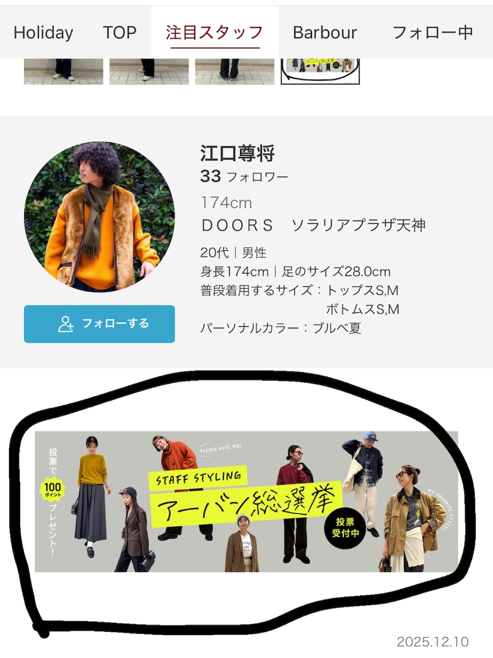 アーバン総選挙ファイナリストまで選ばれています!皆様ぜひ応援の一票をよろしくお願いいたします!アーバンリサーチのアプリから30秒程で投票可能です!