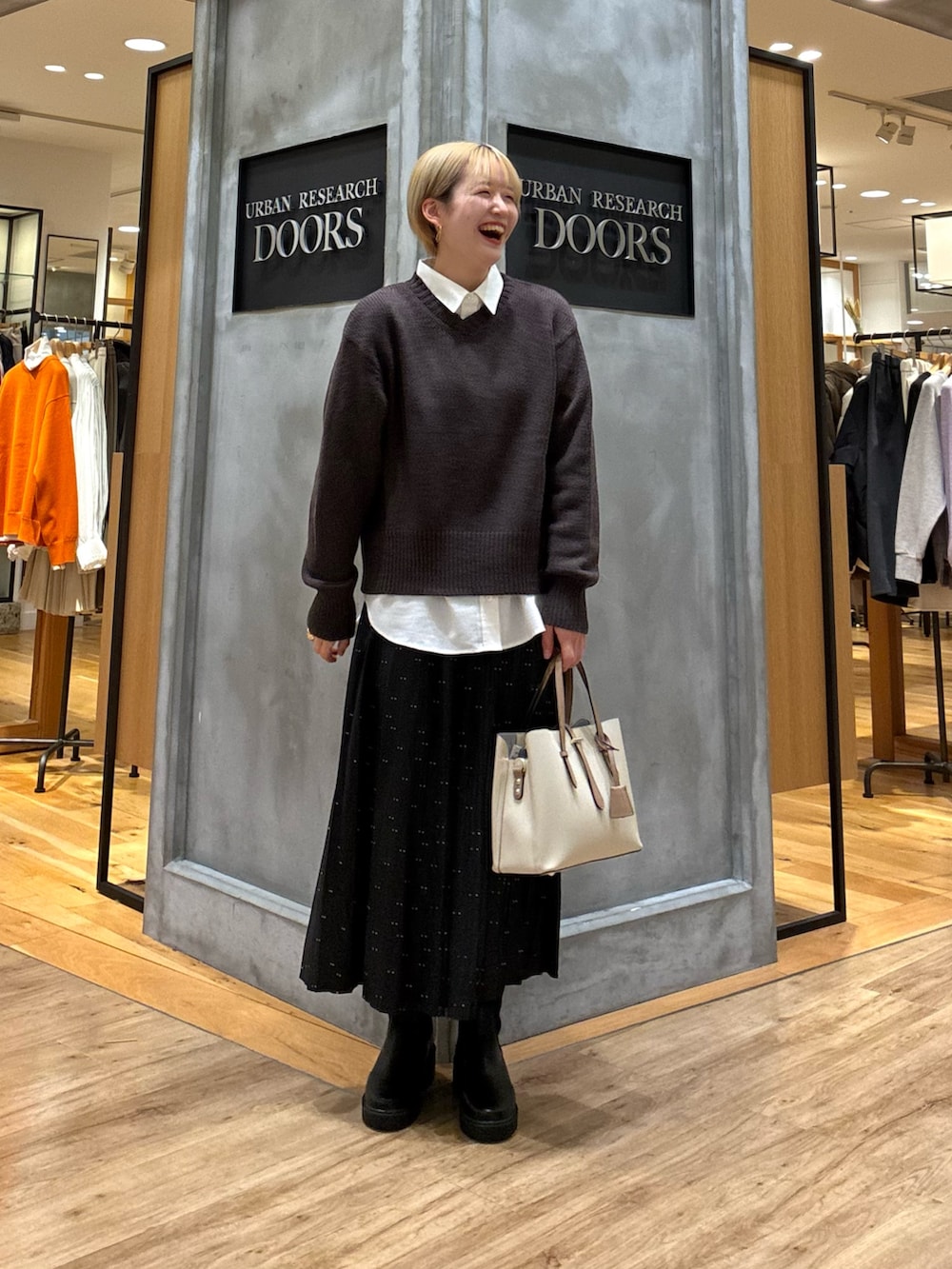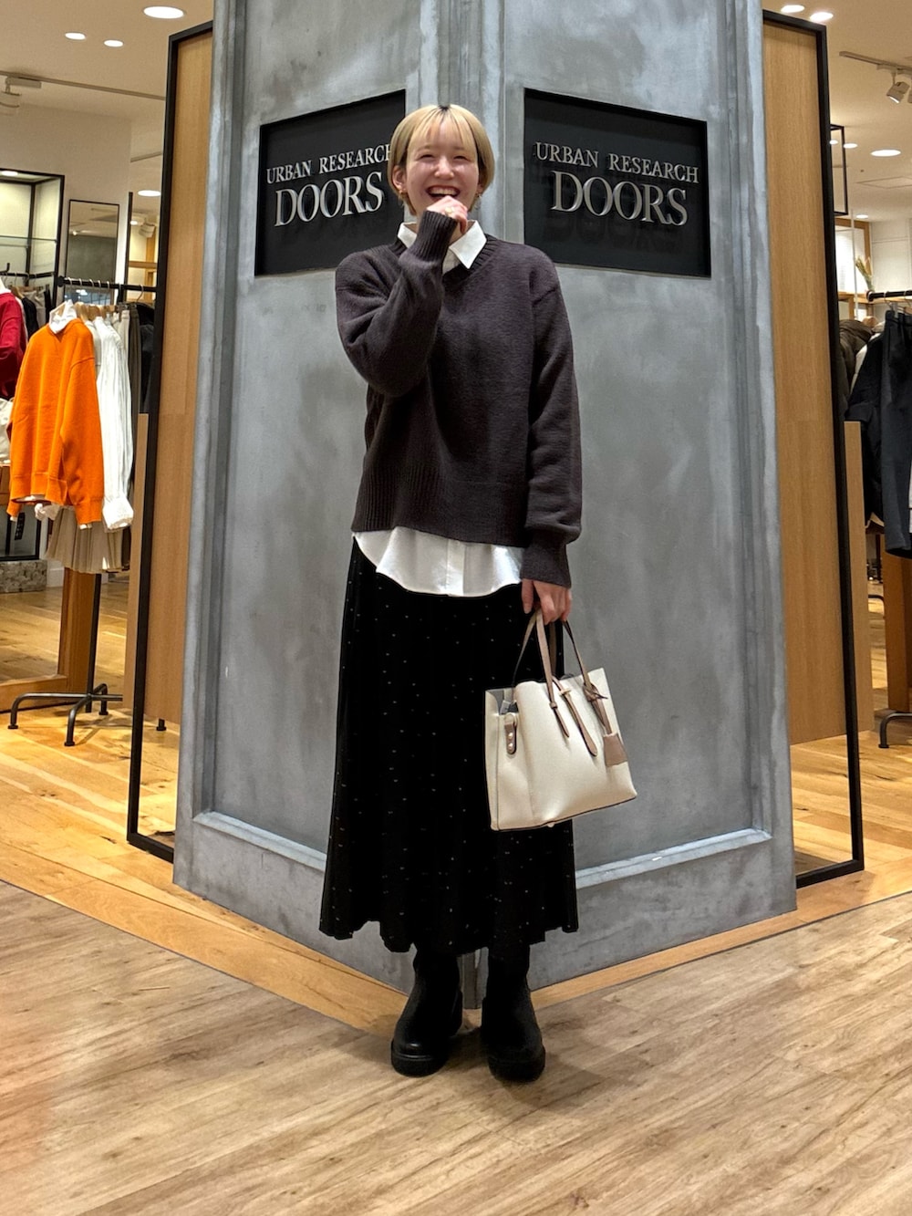 シンプルですが、光沢感のあるURのスカートでコーデが映えます!!
