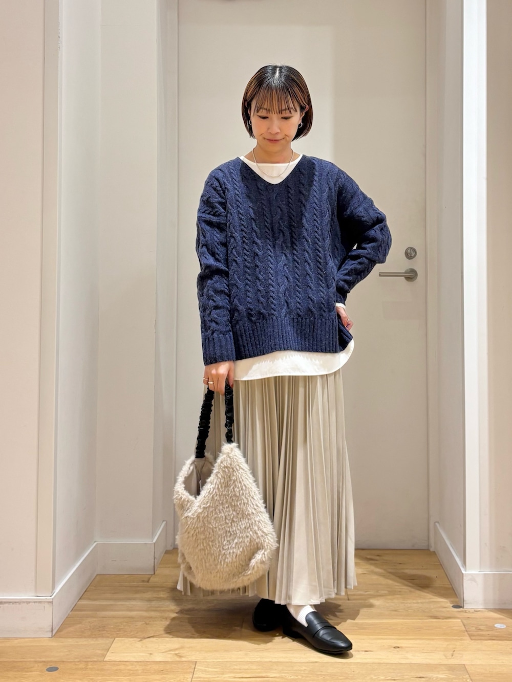 どんなアイテムとも相性が良く、きれいめにもカジュアルにもマッチしますよ◎