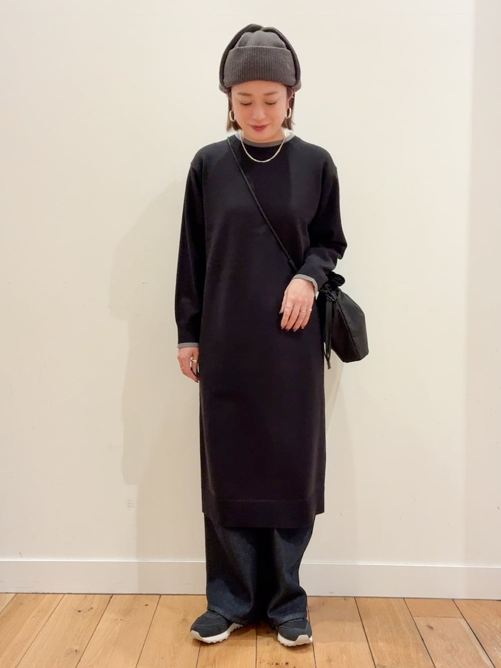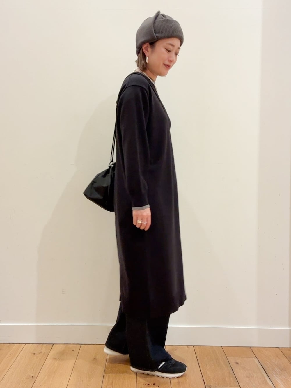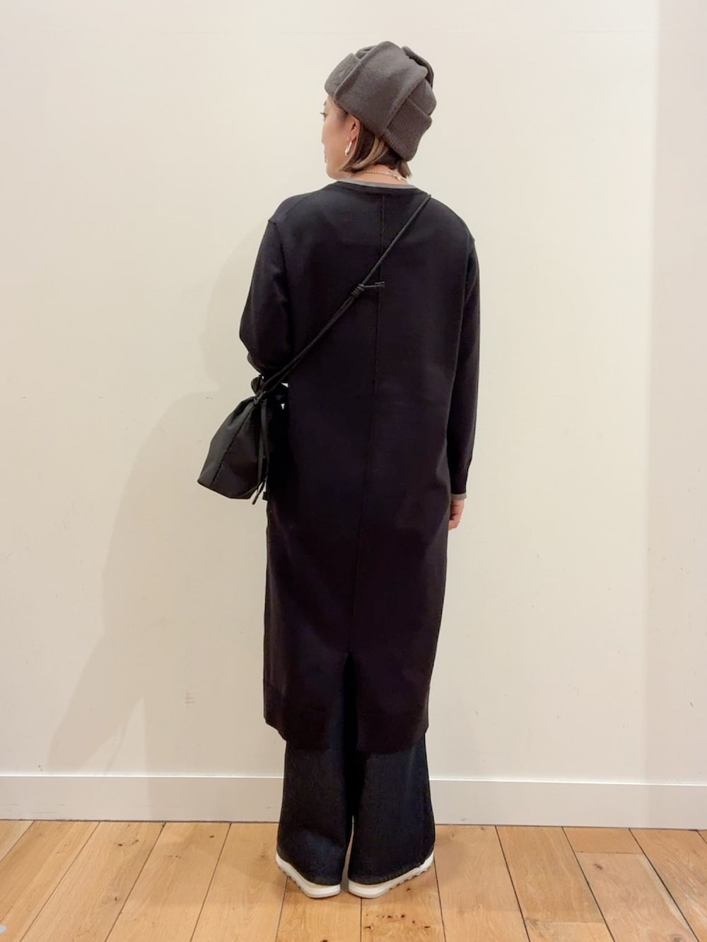 私の身長だと少し着丈が短く脚の出る分量が多いためデニムを合わせています。