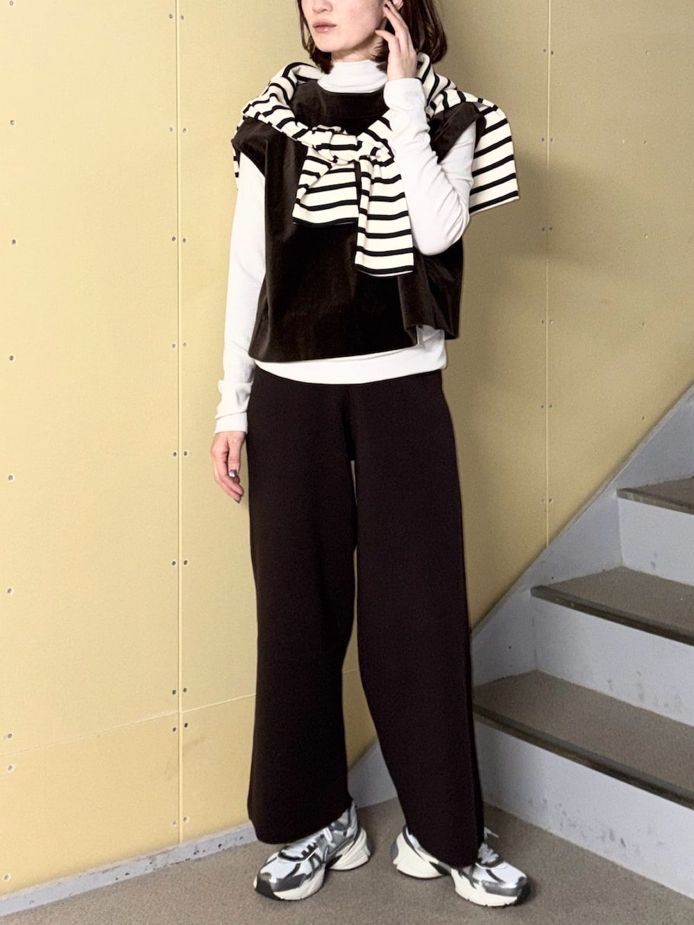 ベルベットとニットの合わせが、程よくきれい見えして心地よいです。