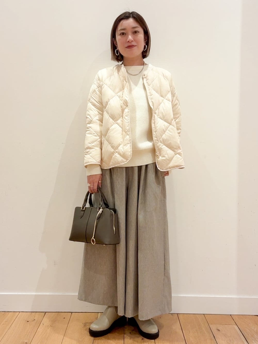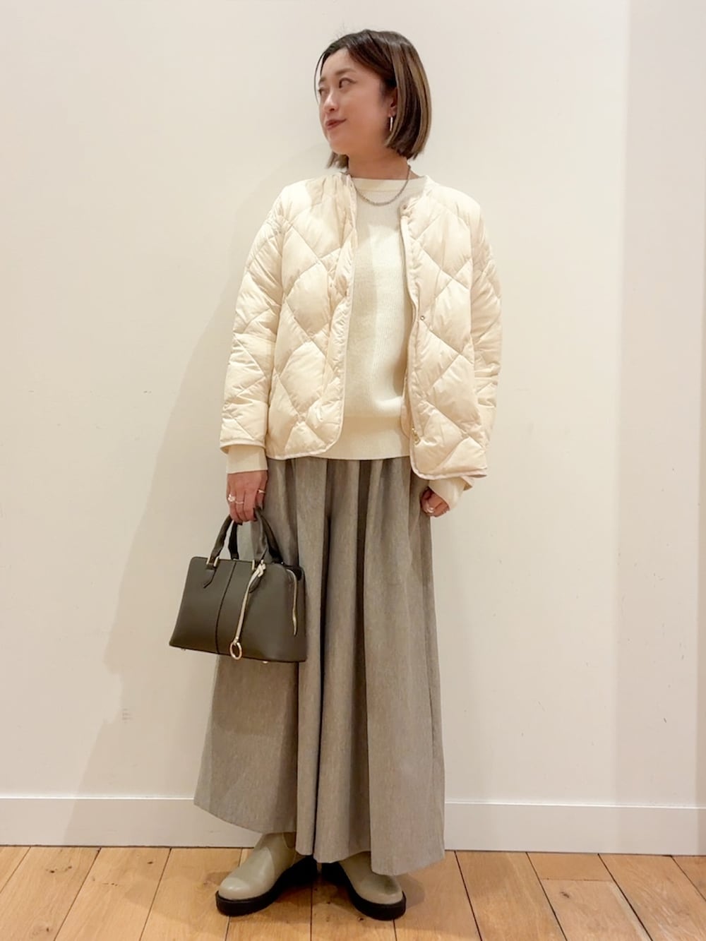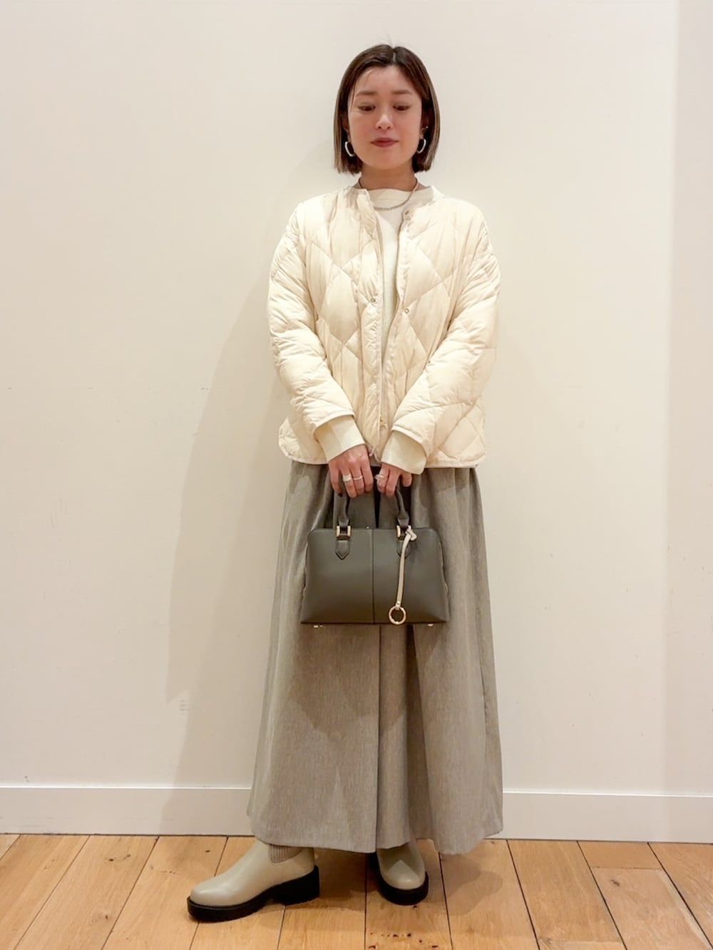 コンパクトにライトダウンを合わせてバランスの良いお出かけコーデに。