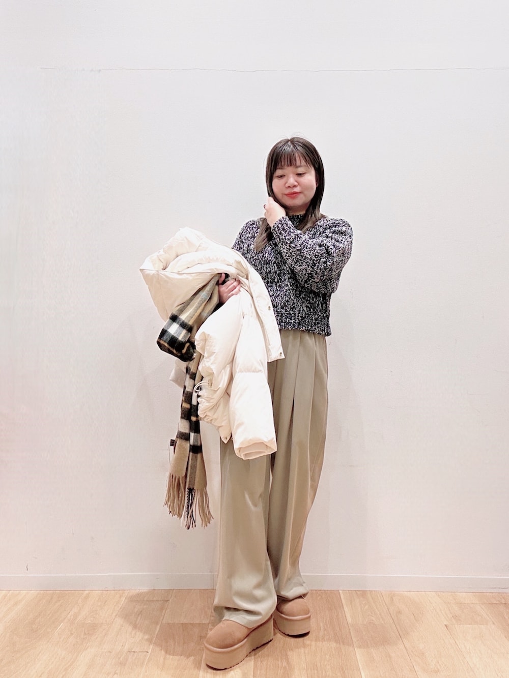 わたしの身長でおへそ下くらいの着丈です🙋