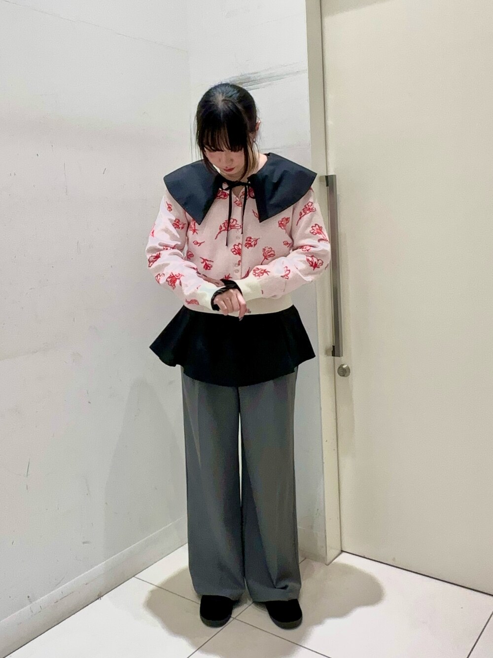 SENSE OF PLACE『洗濯可』ジャガードフラワーコンパクトニットカーディガン- 着用カラー: