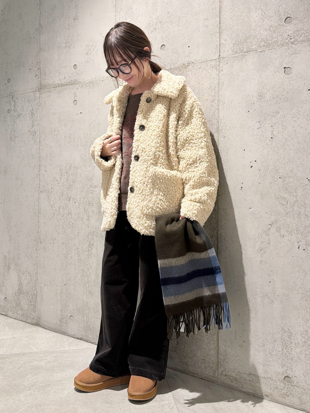 ふんわり毛足のある糸のざっくりとした厚手の生地なので、暖かく着ていただけます。