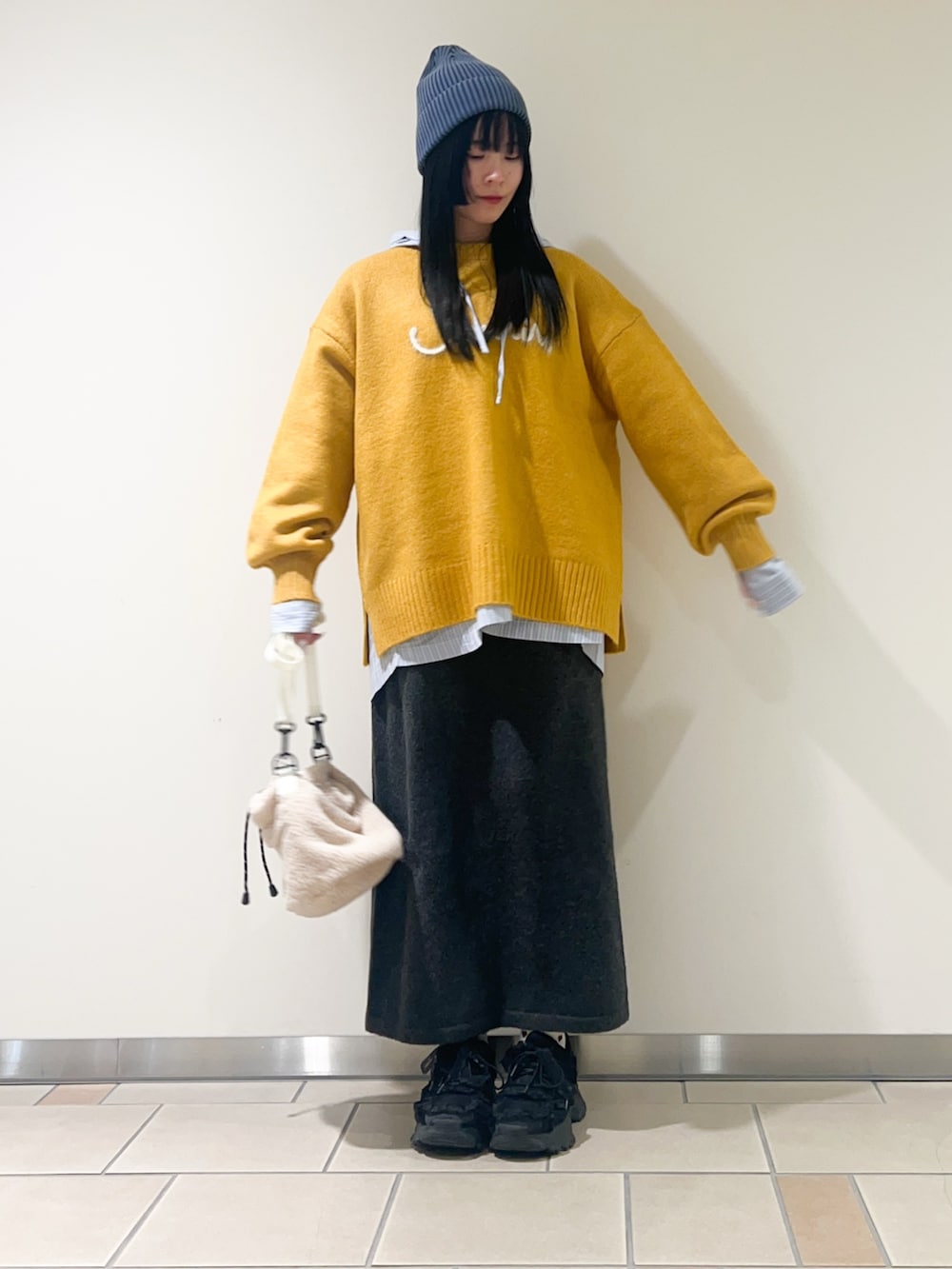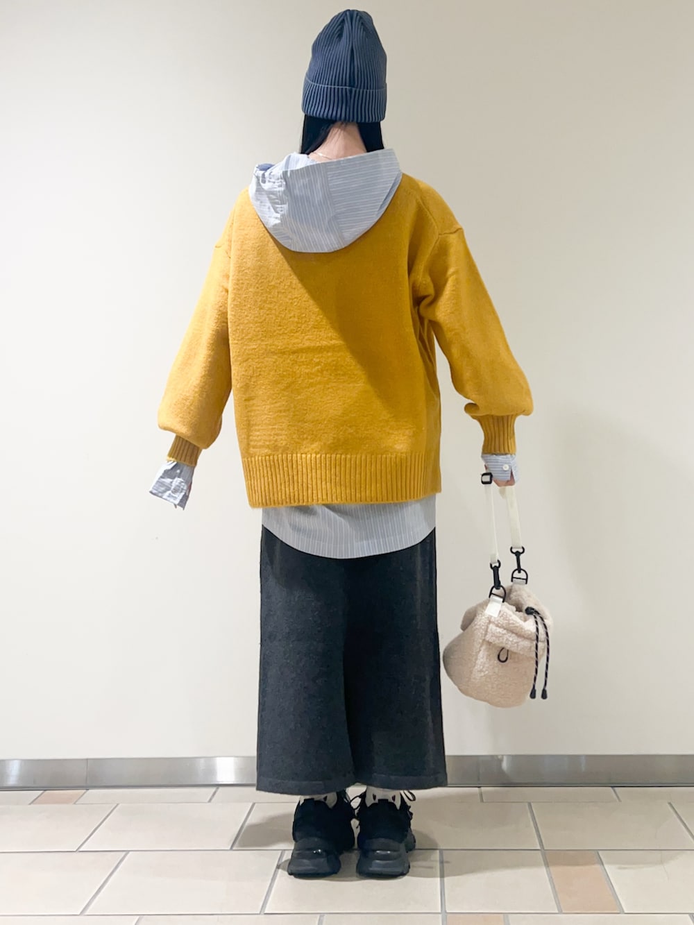 ストンっと落ちたシルエットなのでトップスが大きめでも着膨れしにくいです!!