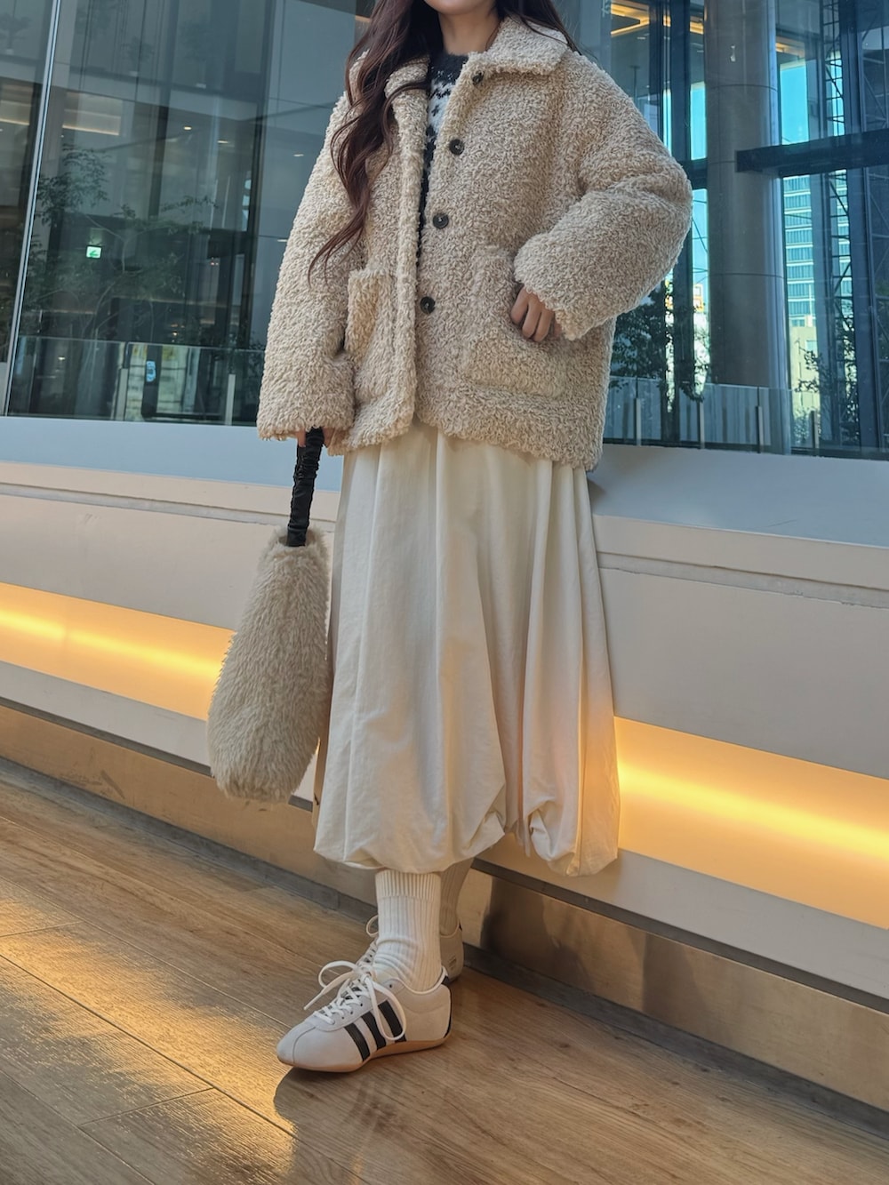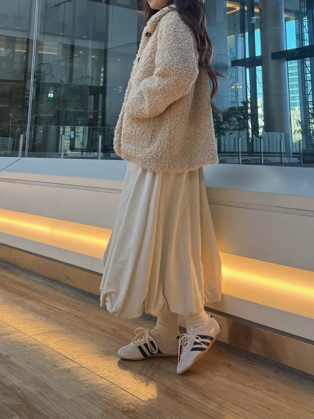 カラーはダークブラウンと、今回着用してるこちらのアイボリーの2色です!