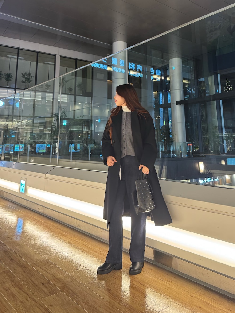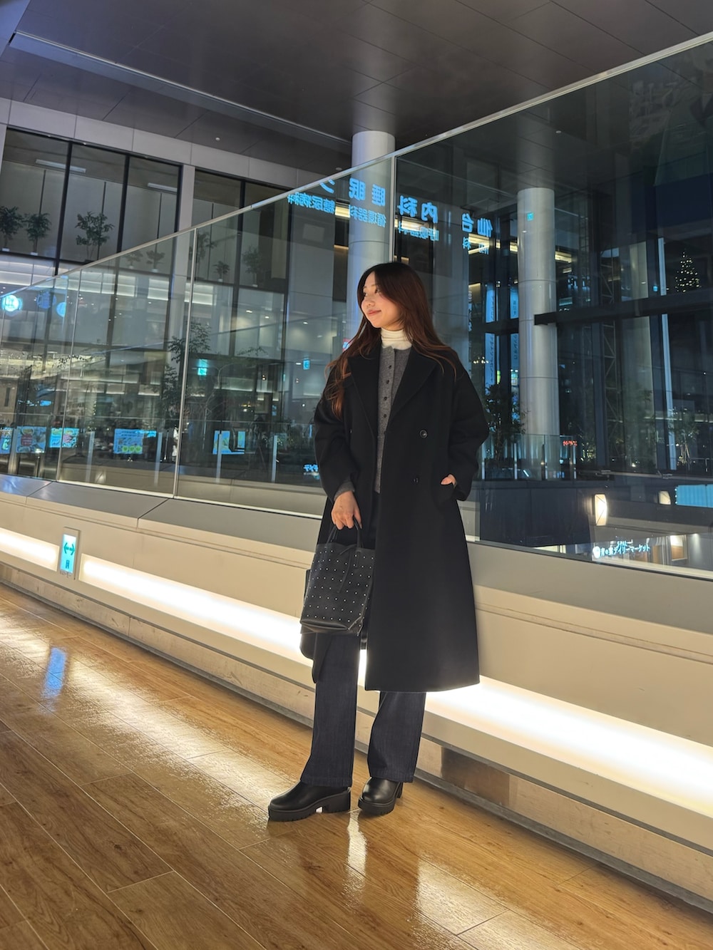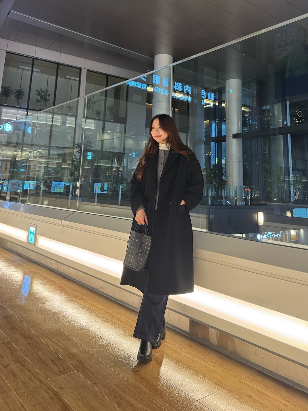 そして、アウターには暖かくて大人っぽく上品な印象を与えるウールチェスターコートを合わせてみました✨