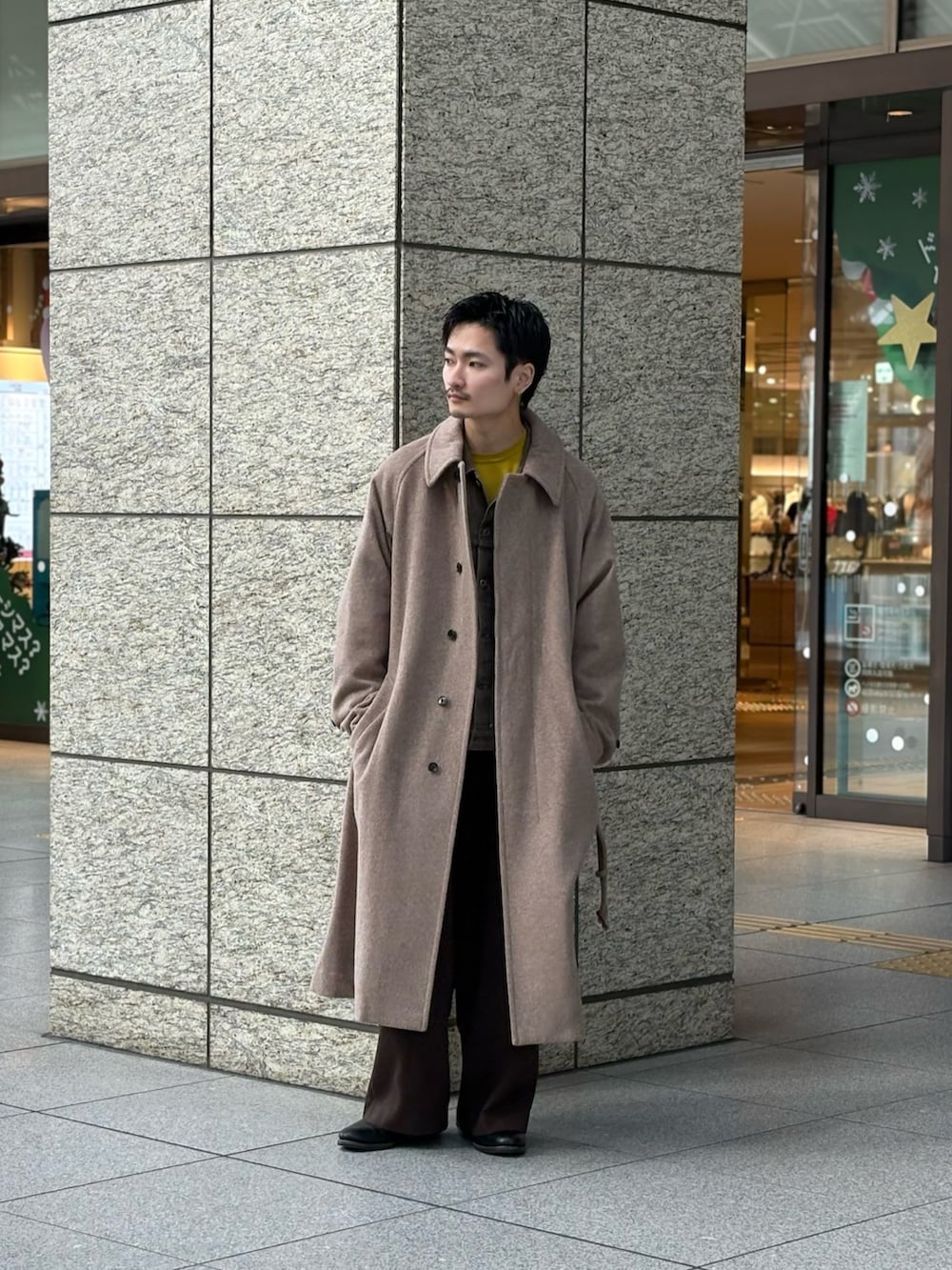 カジュアルなアイテムで着崩して貰えればよりコートの品が際立つと思います。