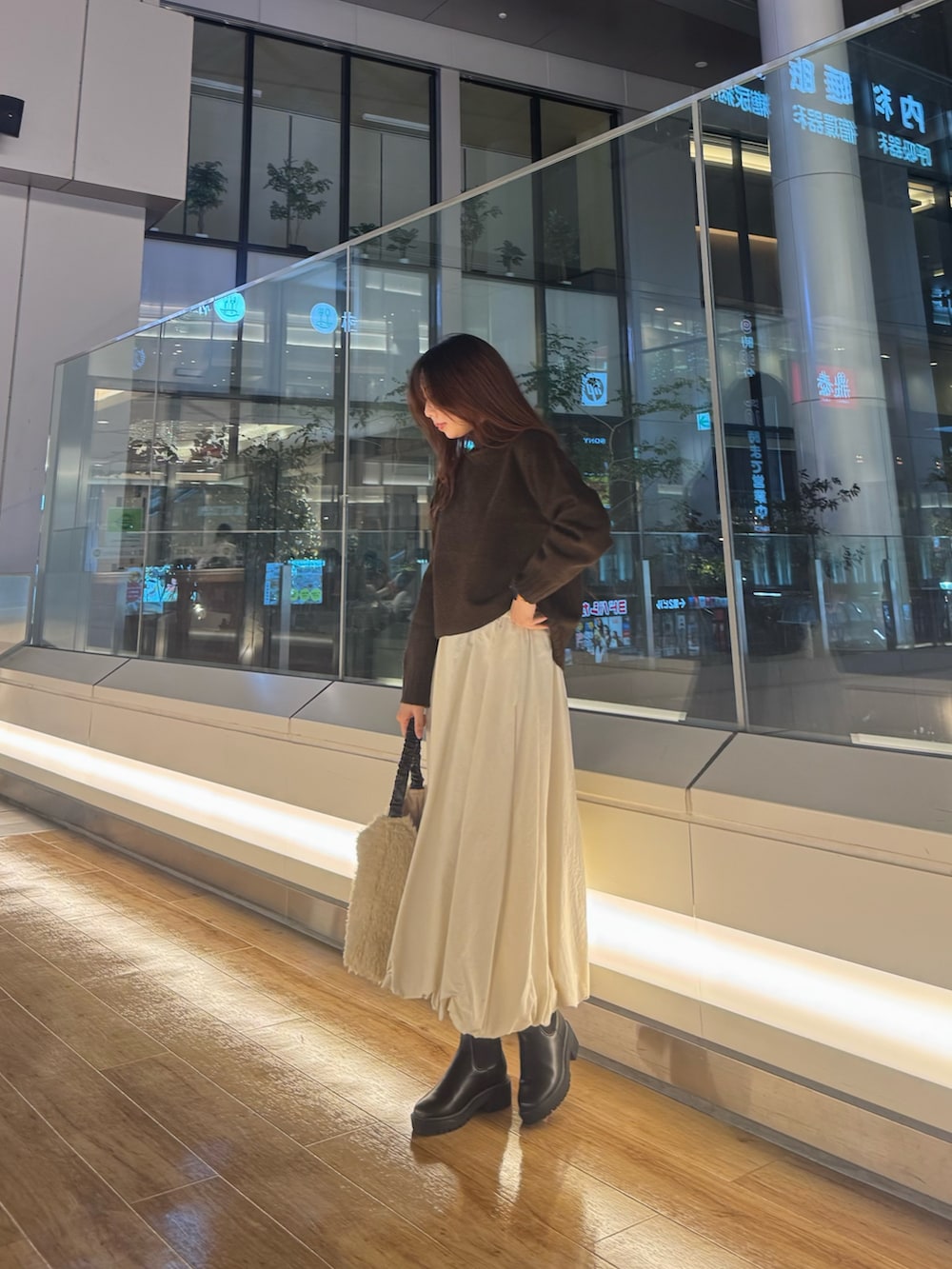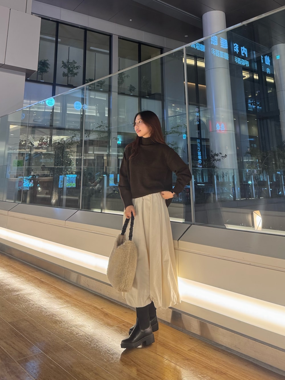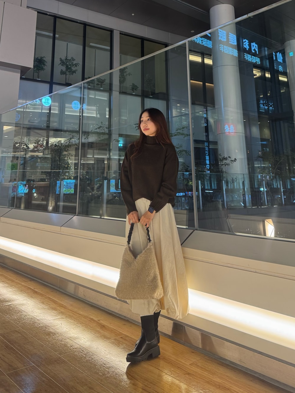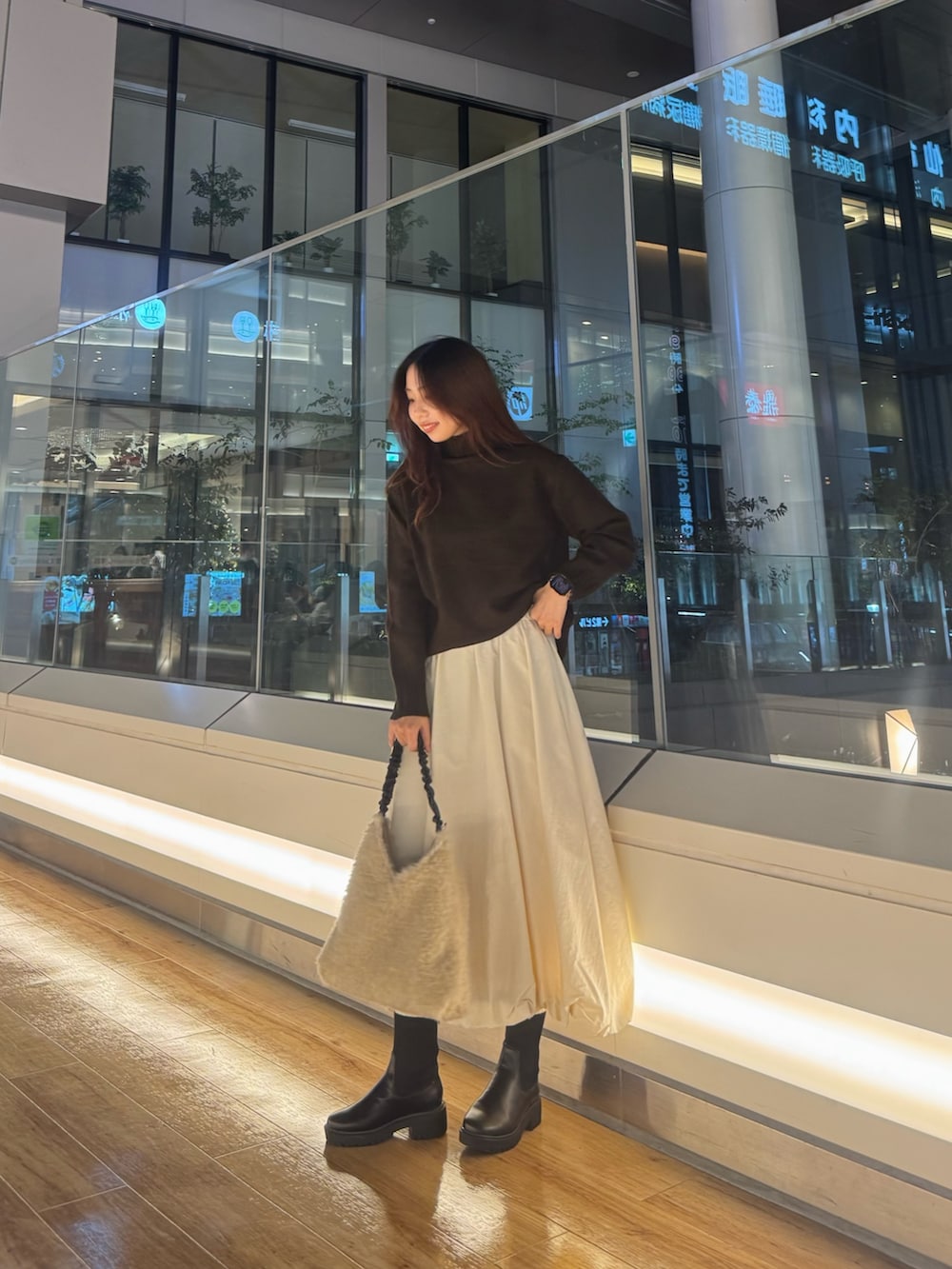 カラー展開が豊富で、今回はブラウンのニットを着用しました!