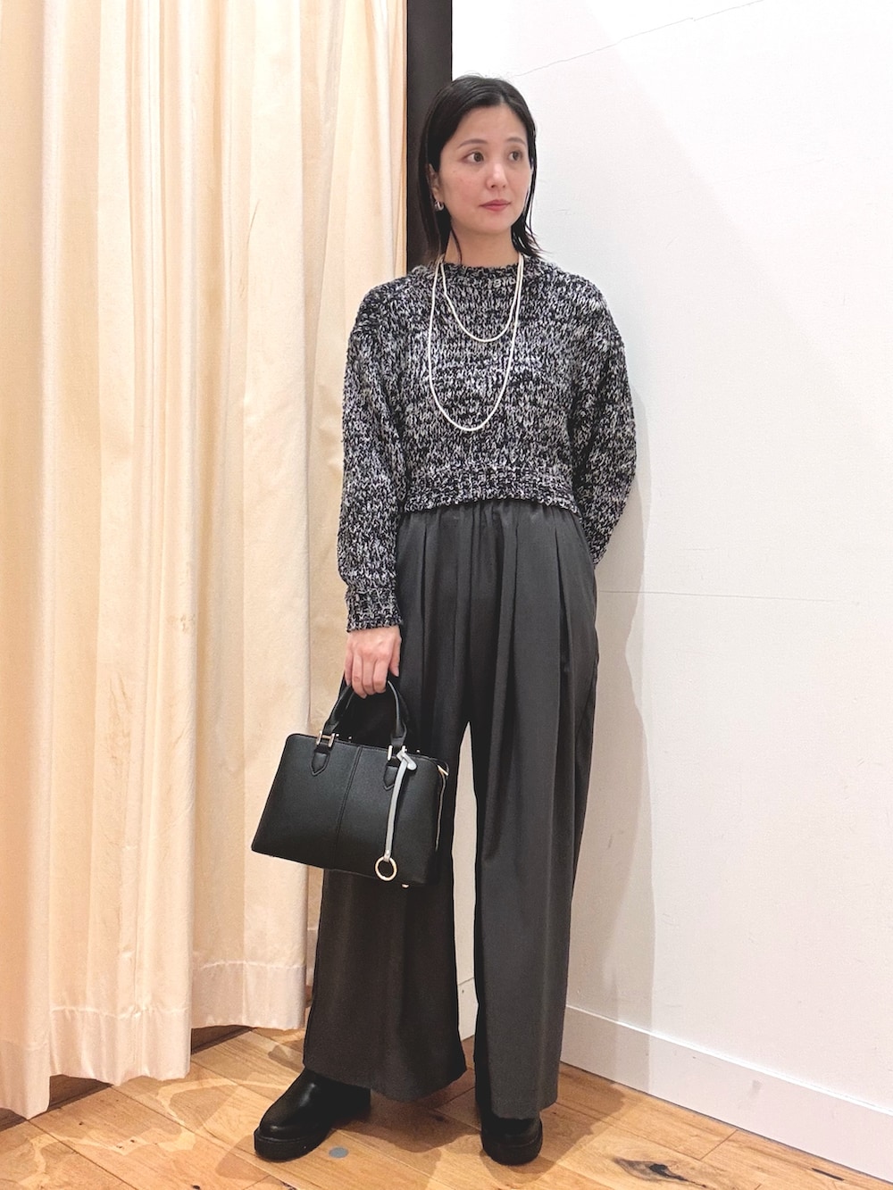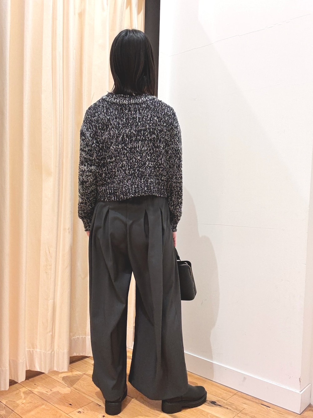 合わせたニットは短丈なので太めのボトムとも好相性。